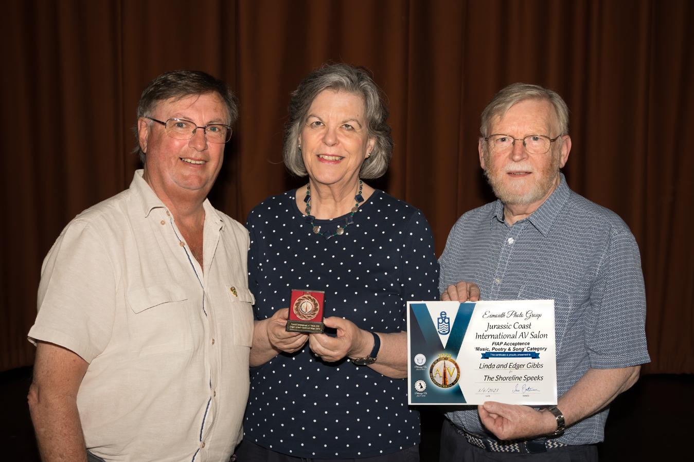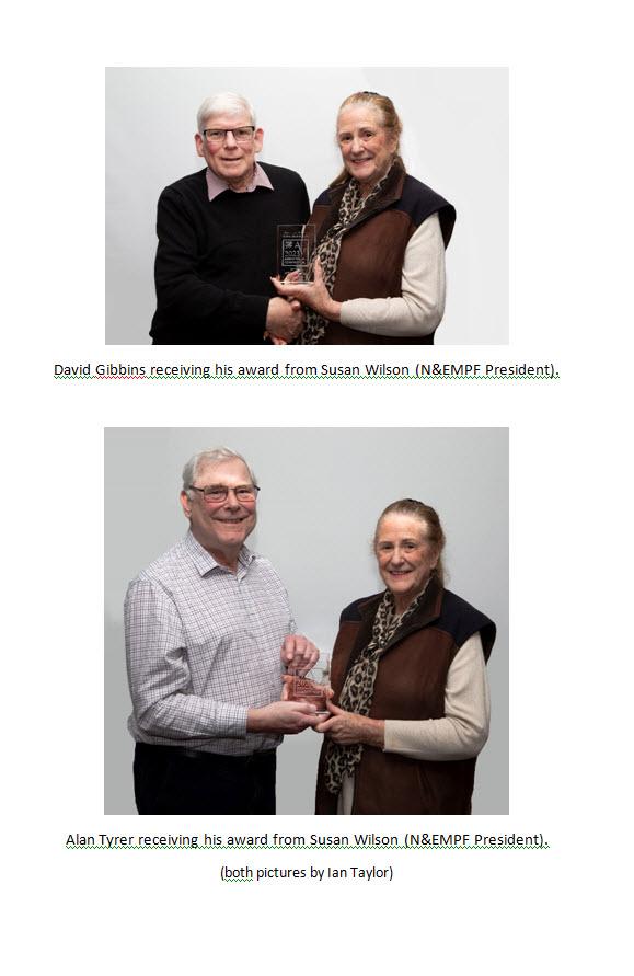 Ian Bateman presenting an award to Linda and Edgar Gibbs