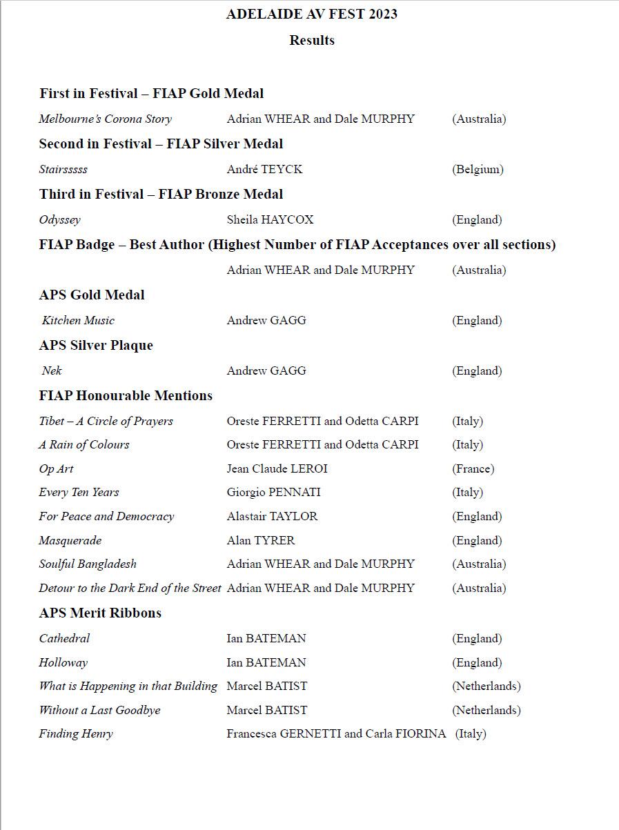 RPS AV Group Issue 16 June 2023 Page 18 Competition Results - Adelaide 2023
