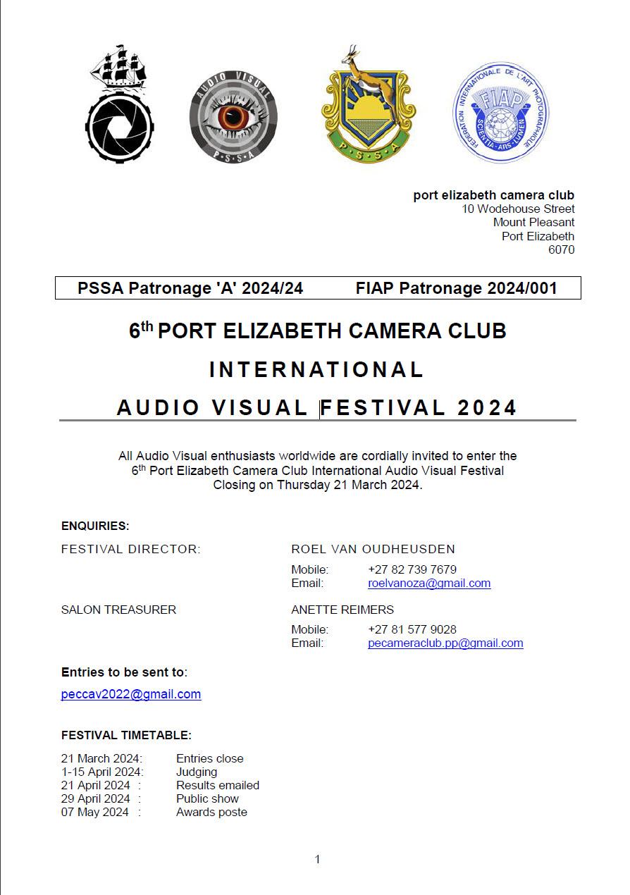 RPS AV Group Issue 17 August 2023 Page 6 Port Elizabeth Camera Club Festival 2024