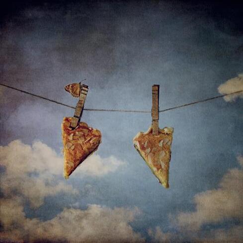 Bakewell Tart, Washing Line Project. It only became apparent later that the butterfly triangle mirrored the shape of the slices.