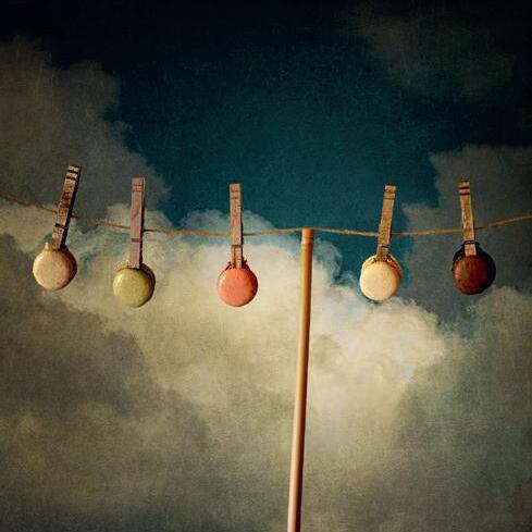 Macarons, Washing Line Project. The most difficult image to take. You won’t believe the trouble and mess this one caused… the number of boxes of macarons I went through to get just five hanging at the same time was many!