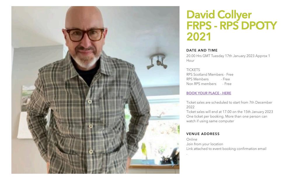 PutthedateinyournewdiarynowbeforeitispromotedtothewholeoftheRPS membership,asitmaysellout.Clickbelowtotakeyoudirectlytobookyour placeforthis FREE eventforallRPSmembers,andtoreadmoredetail.