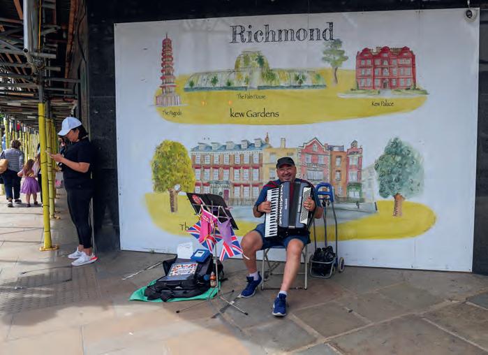 And the ‘village’ that is Richmondupon-Thames has new coffee shops and a busker taking advantage of the site of the old department store as it undergoes re-development. But my favourite view? For me, iconic Richmond, looking over the Thames from the top of the hill....was disappointing. I feel it’s more impressive at a time of year when there are fewer leaves on the trees than during my visit. And that just goes to show that Steve Mc Curry was right when he said ‘There’s no guarantee that you’re going to make good pictures just because you happen to be in an exotic location. The same rules of photography still apply: light