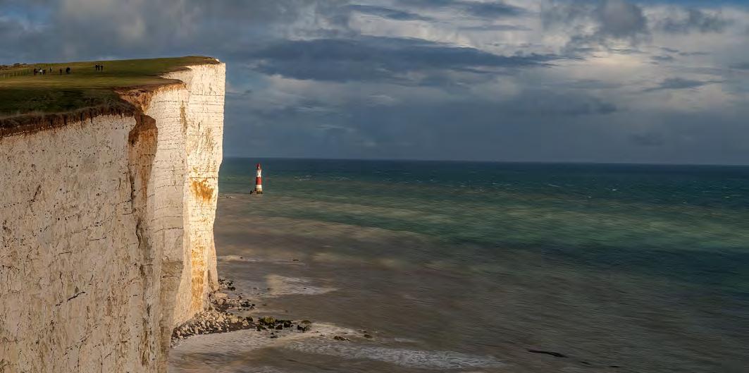In the image below, taken one autumn afternoon at Beachy Head, I enjoy the juxtaposition of the sunlit cliff with the lighthouse and the people walking on the clifftop. The lighthouse looks so small and vulnerable from this angle.