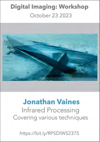 © 2023 Apart from storage and viewing in its entirety for personal reference, no part of this publication may be reproduced, stored in a retrieval system or transmitted in any form or by any means, electronic, mechanical, photocopying, recording or otherwise without the written permission of the Editor. The Royal Photographic Society, RPS Digital Imaging and the Editor accept no liability for misuse of any of the content or for any breach of copyright by a contributor. The views expressed in this magazine do not necessarily reflect the policies of the Royal Photographic Society or of RPS Digital Imaging.