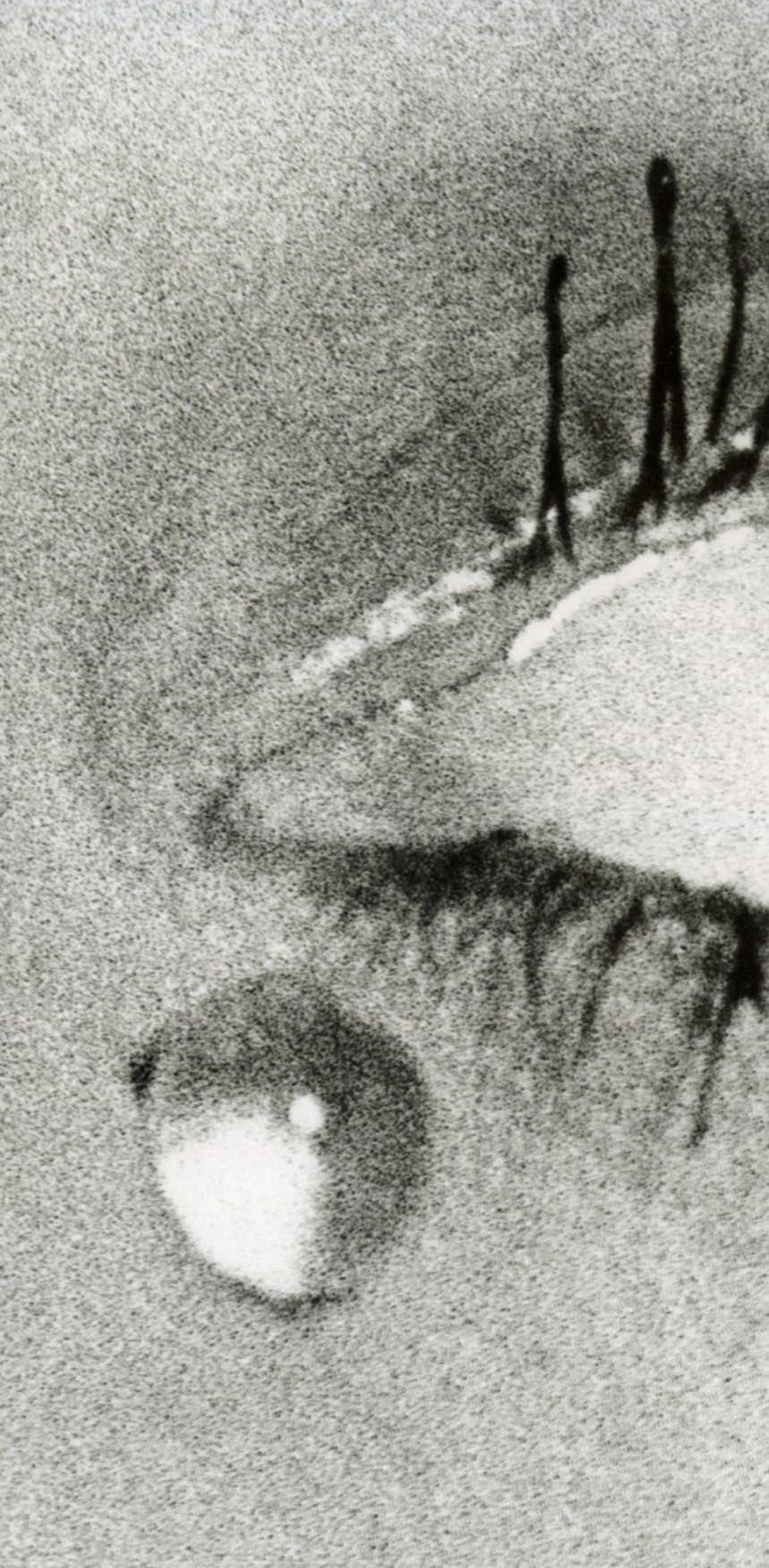 Fig.6: ‘Eye and Tears’, 1932. A dancer’s make-up brought forth ‘glass’ tears that do not express any kind of emotion. This is actually a small detail from a full-length photograph of a cancan dancer –hence the grain. Intimacy and eroticism were key themes in Man Ray’s work.
