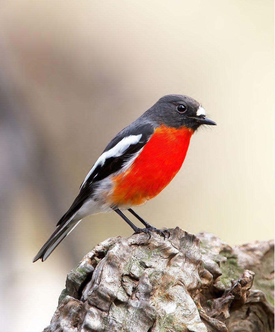 thousands of kilometres across Australia and beyond in pursuit of bird photography, from the Galapágos for Brown Pelicans to the sub-Antarctic for penguins. His image titles tell the story: King Penguins Going Fishing, Kestrel and Mouse, Flame Robin, Rainbow Bird, Regent Bowerbird — each one a small window into the rich avian world he has spent a lifetime observing.