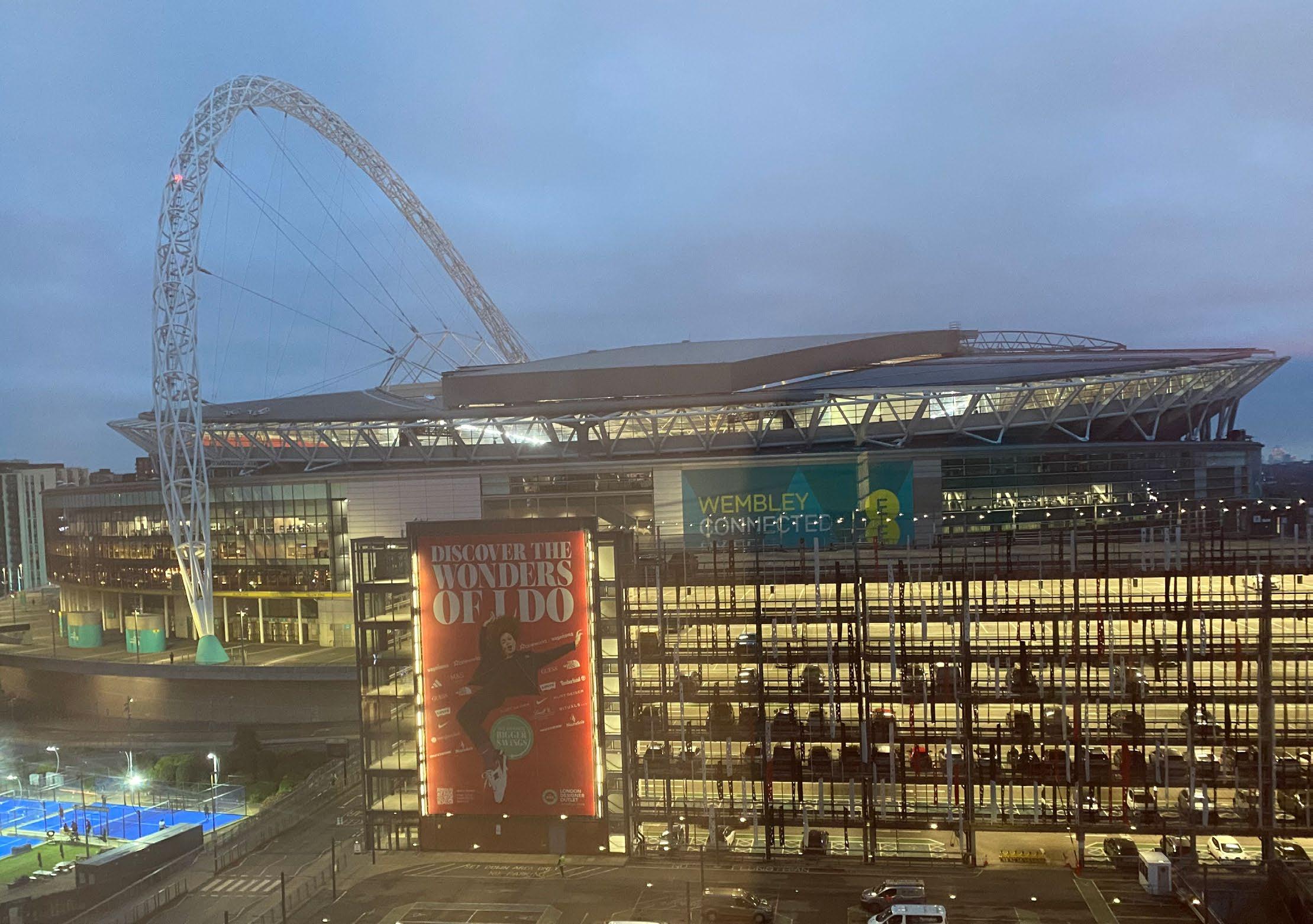 As the old song goes “what a difference a day makes”. The image to the right show Wembley Stadium from my hotel window on the evening I arrived in London. The bottom image is just over 24 hours later and a proper London Pea Souper.