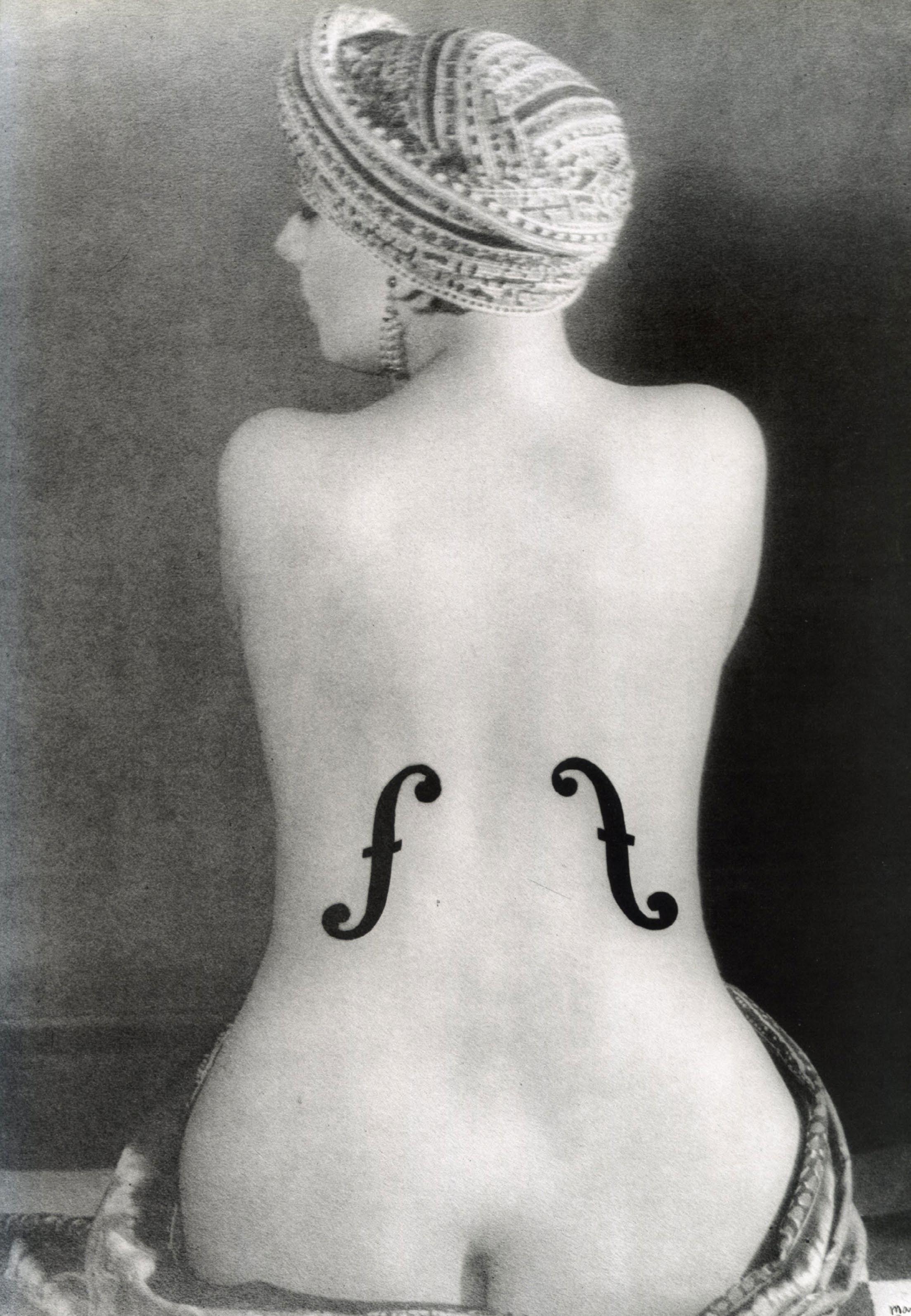 Fig.3: Man Ray’s most famous image: ‘Le Violin d’Ingres’, 1924. Kiki’s pose, seated and wearing an Oriental Turban recalls that of La Grande Baigneuse in the painting by Ingres. In 2022 an original signed print of the work sold for US$12.4 million.