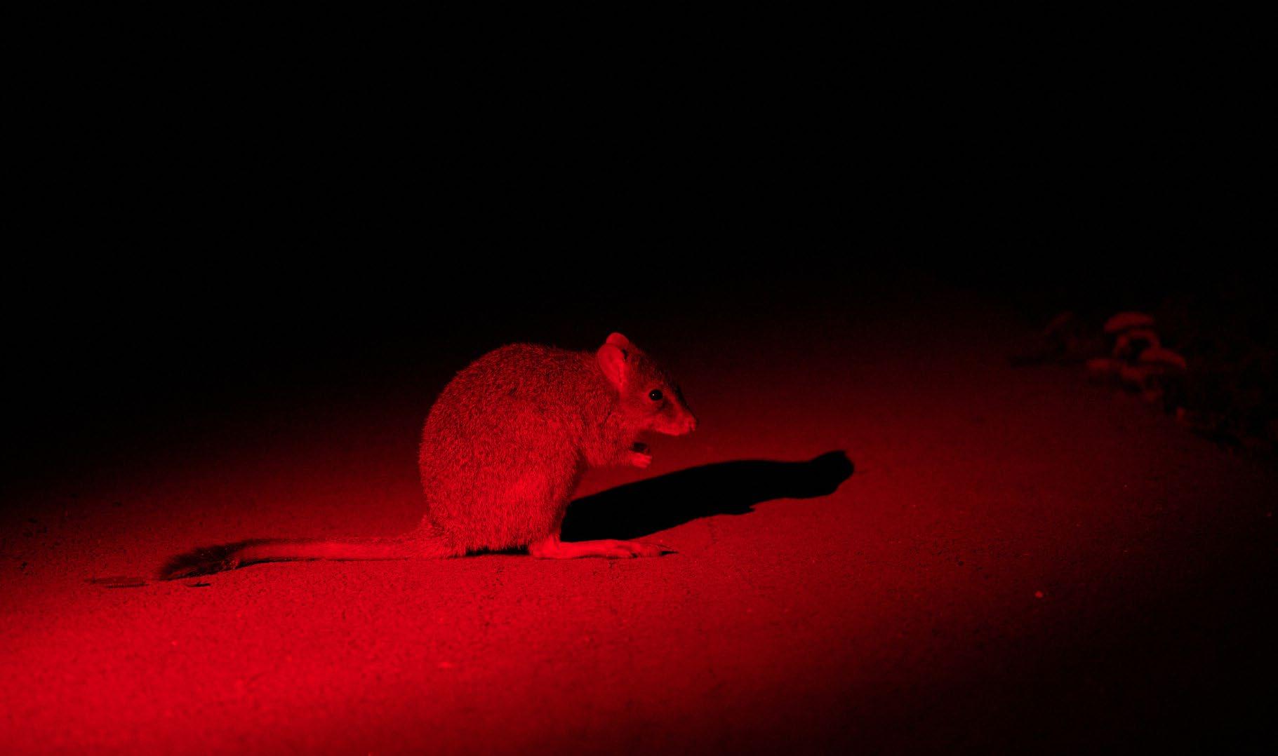 Fig. 2: A Woylie leaves the feeding area at Barna Mia Nocturnal experience