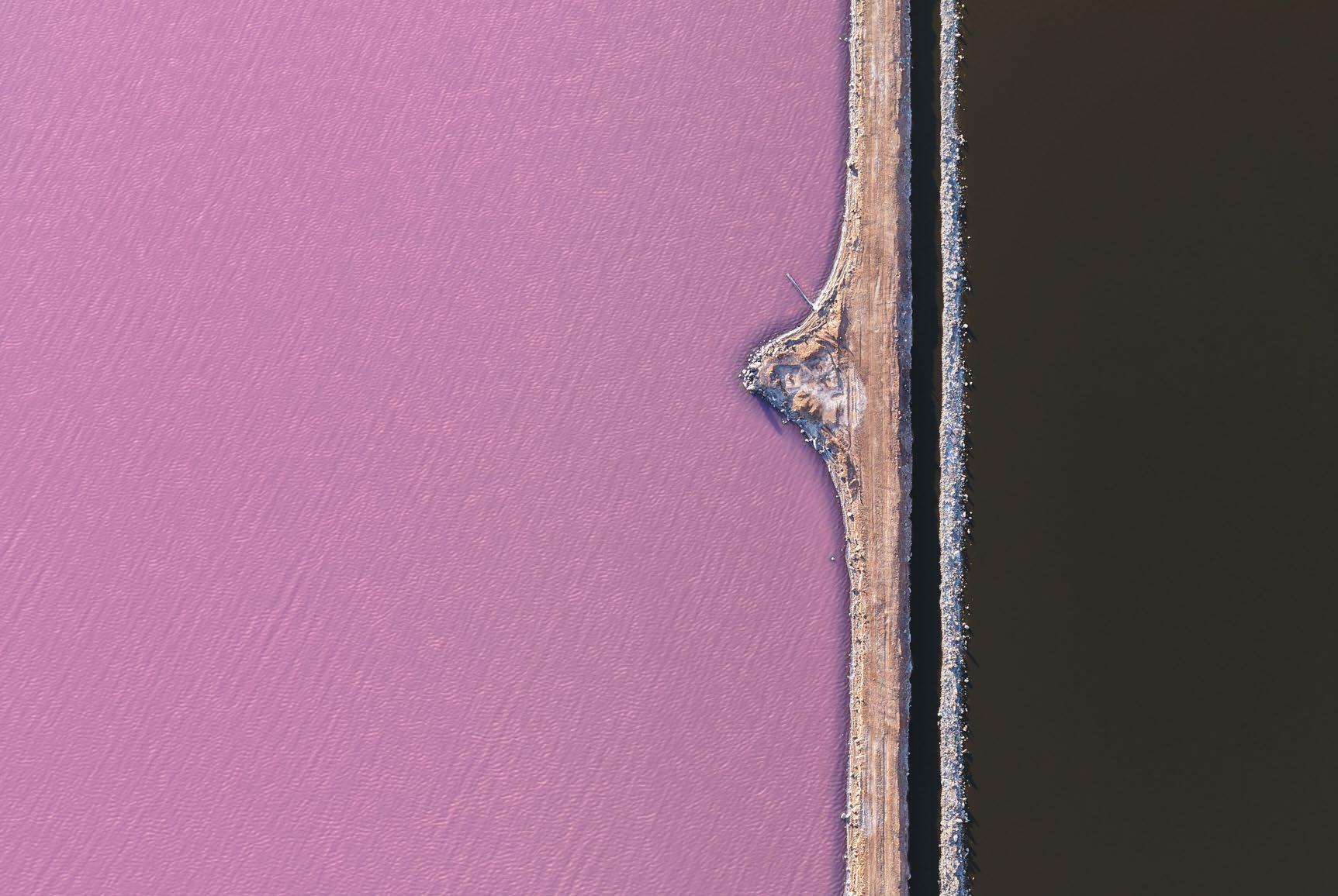 Hutt Lagoon is on the itinerary of most travellers driving north from Perth towards Broome. Its appearance changes throughout the year. On my first visit, in the height of summer, it appeared a soft pink. During the second visit, in drier conditions, the pink tones were significantly stronger and more vivid. I used the drone to photograph the softer edges of the natural lagoon, as well as more dramatic compositions where the salt mine meets the lake.