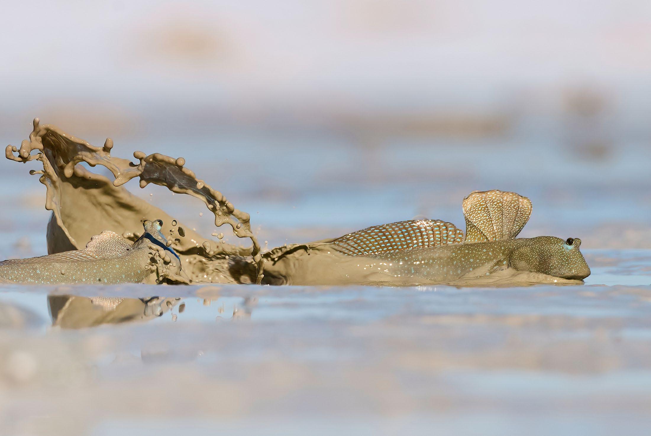 Fig. 11: Two blue spotted mud-skippers fight for territory