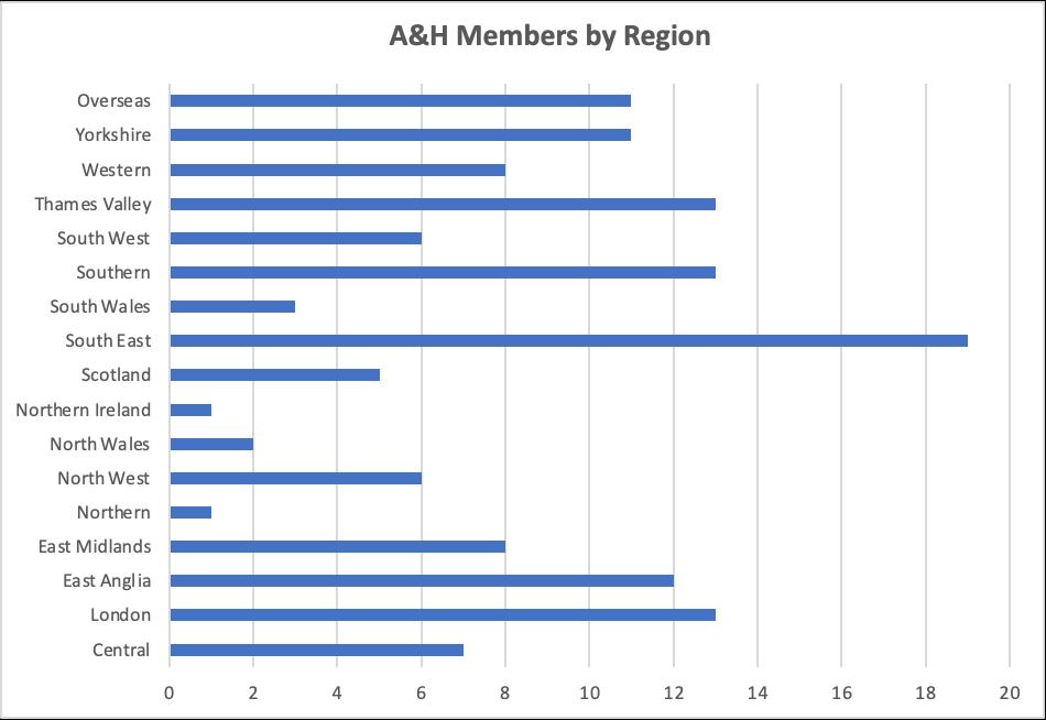 The graphic on the next page shows how many members are in different RPS Regions and we are very much widely spread around the world and UK.