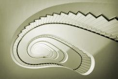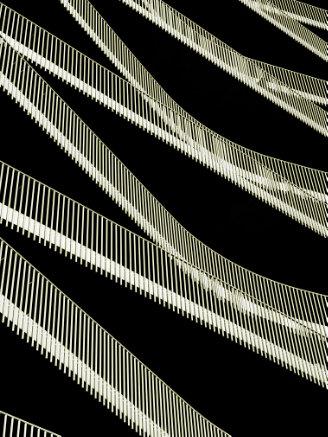 A study in pure black and white and a compelling arrangement of architectural abstracts. Many photographers would not have ventured to overlap the various elements, but the three areas of intersection provide an intriguing variation from the otherwise rigid geometry of the balconies. In an image such as this with no mid-tones, the gaps (black) are equally important to the composition as are the balconies (white). The striking final result is likely to remain in my memory for some time!