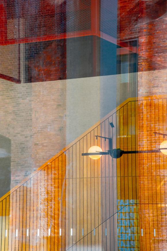 The only thing I could think of was to go out on the streets again and let my eye take over. Too many people rush past everything, just on a boring journey from A to B. I always stop and look longer and find my magical realism, blurring the line between fantasy and reality. I love walking around a city looking at the designs, the colours, and shapes of things, particularly architecture. As I stopped and pondered this for a few minutes, I realised that the sunlight through a window near me on a shop looked amazing. I am easily distracted. I feel this is a creative tool!