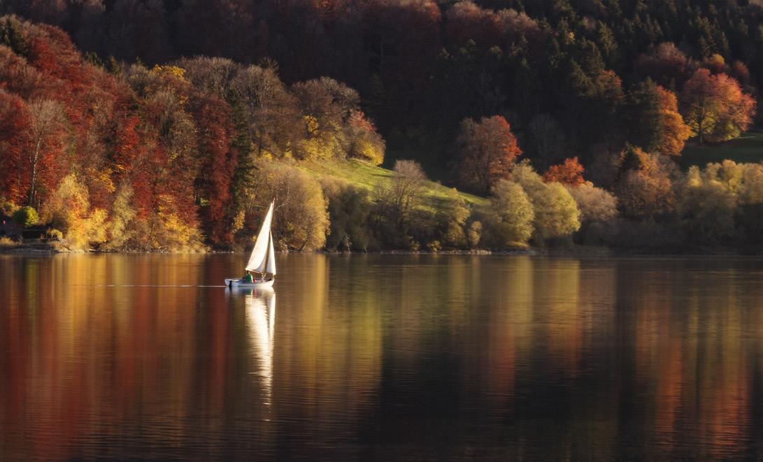 Lac de Gruyère is a favourite location about twenty minutes from home and this particular shot was taken on a beautiful day when there was a lone yacht on the lake with a backdrop of autumn colours and reflections. The lake in Canton Fribourg is a man-made reservoir created in 1948 to supply both drinking water and hydroelectricity.