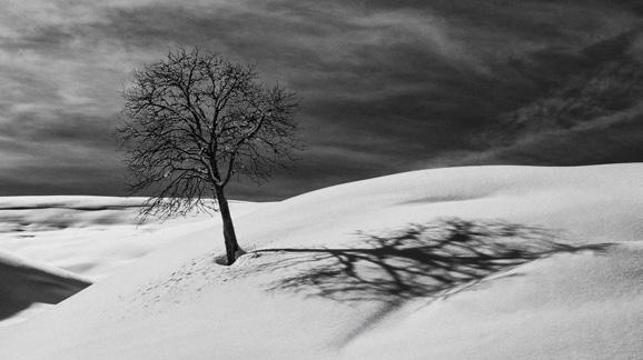 Some images can work better in black and white and Winter Tree was taken in the Emmental region of Canton Bern. I was taken by the stark lone tree set against the snow and dramatic sky which produced an interesting shadow.