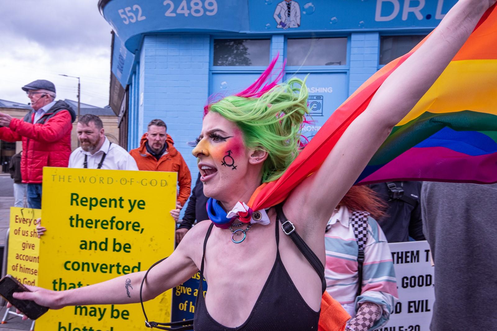 Five days in Glasgow would only be sufficient to scratch the surface of what this city has to offer photographically. Fortunately, our workshop leader, Iain McGowan FRPS, had previously scouted several locations for us to visit and to create our own personal interpretations. An added bonus was the Glasgow Pride march that took place on one day of our visit. Photographing the characters on the march was a joy as it was a celebratory occasion and taking pictures did not seem at all intrusive. However, there was also a small religious group whose views did not coincide with those on the march and that created a tension that I also wanted to capture.