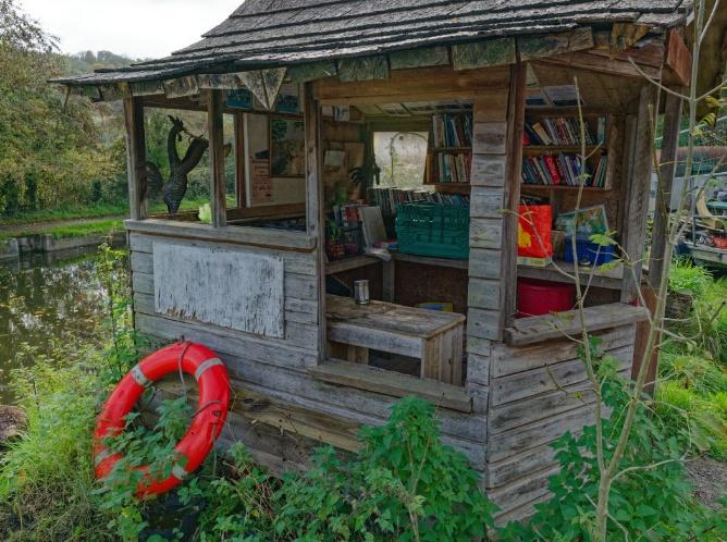 “I was fascinated by an extremely small bright blue boat, where, we were told, an artist lived. On the other side of the canal one of our group spotted a quirky looking shed, which turned out to be a ‘library’ used by the canal community.”
