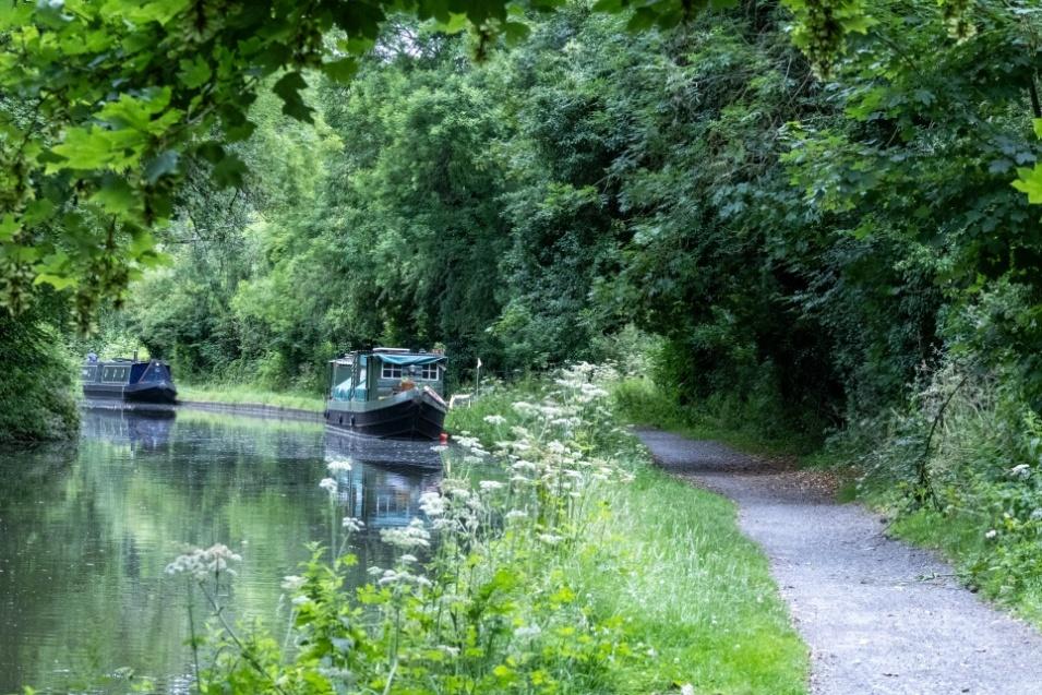 “Canal Boats Embraced in Green”