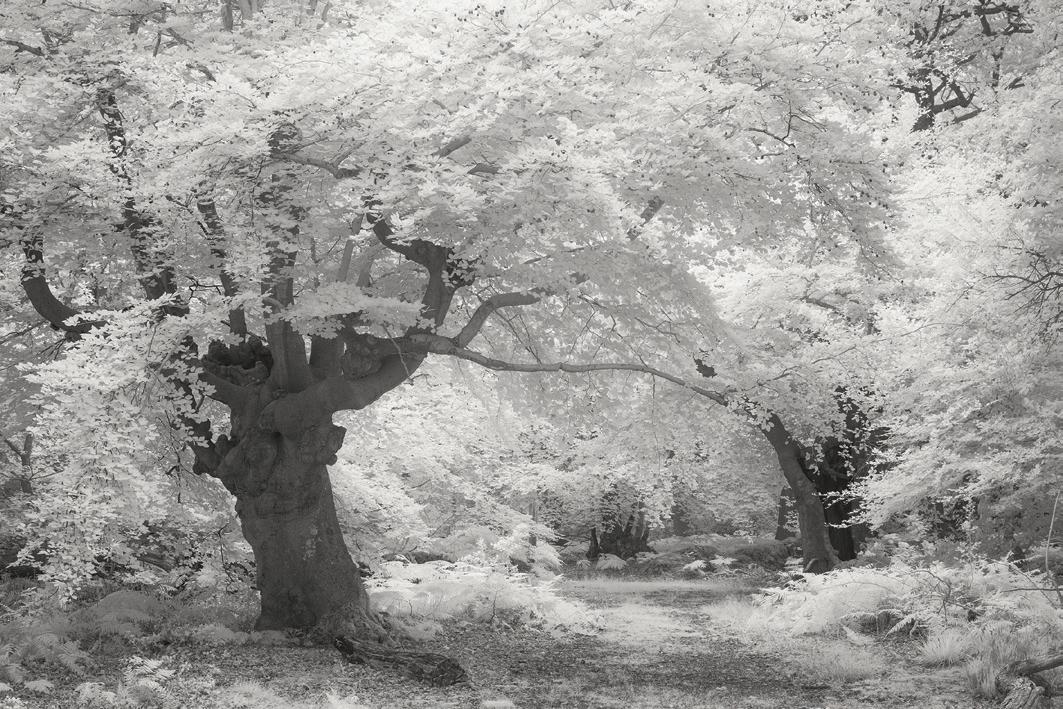 Unfortunately, it all means that alarm clocks have to be set earlier and earlier to appreciate the dawn. Trees, once stark and bare, are now fully clothed in swathes of green, so much so that the woodland colour palette can become very limited, having to rely on bright, overcast days for subtle variations of light and varying shades of green. Cloudless days with laser bright light can play havoc with dynamic range. The countryside can look fabulous through our own eyes, and is a pleasure to walk through but the extreme contrast is something that a camera sensor finds very difficult to cope with. This is when I discovered the unique qualities that infrared capture can achieve. I find the low contrast of infrared files enables the sensor to capture details in the highlights
