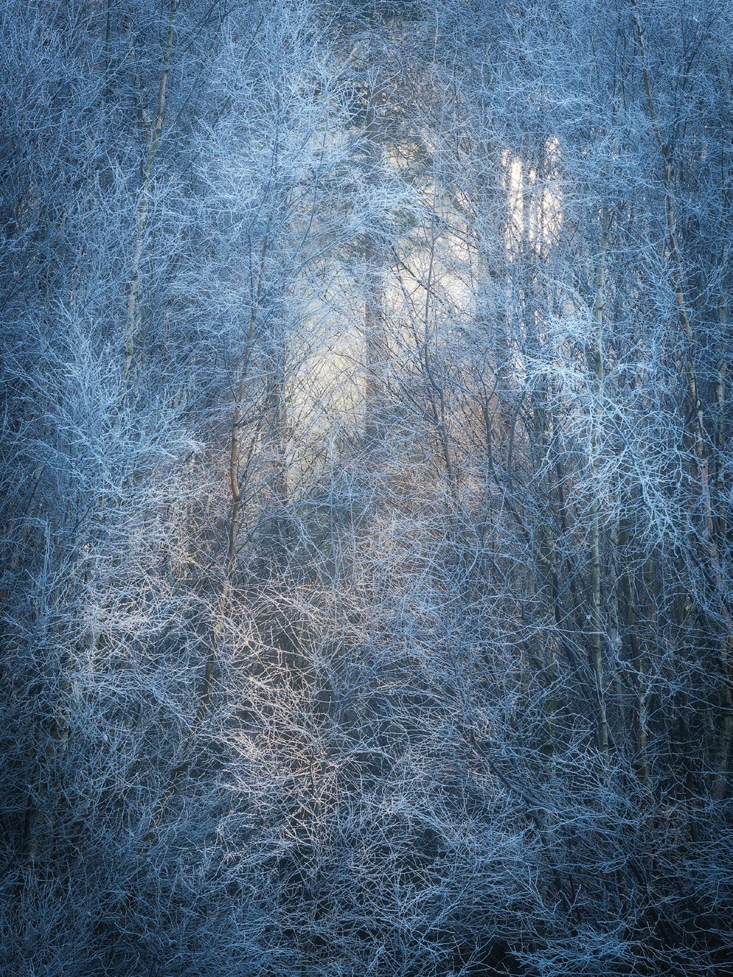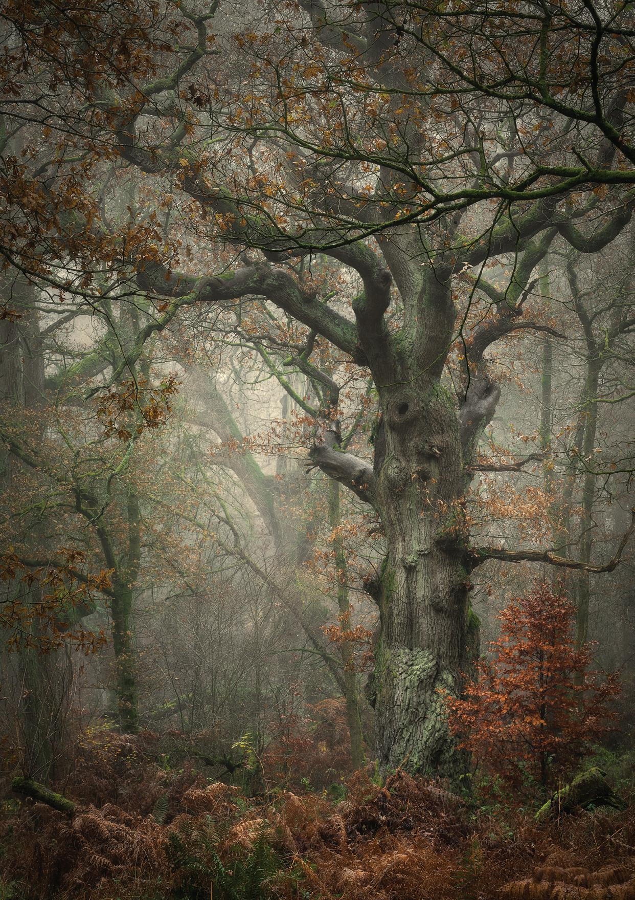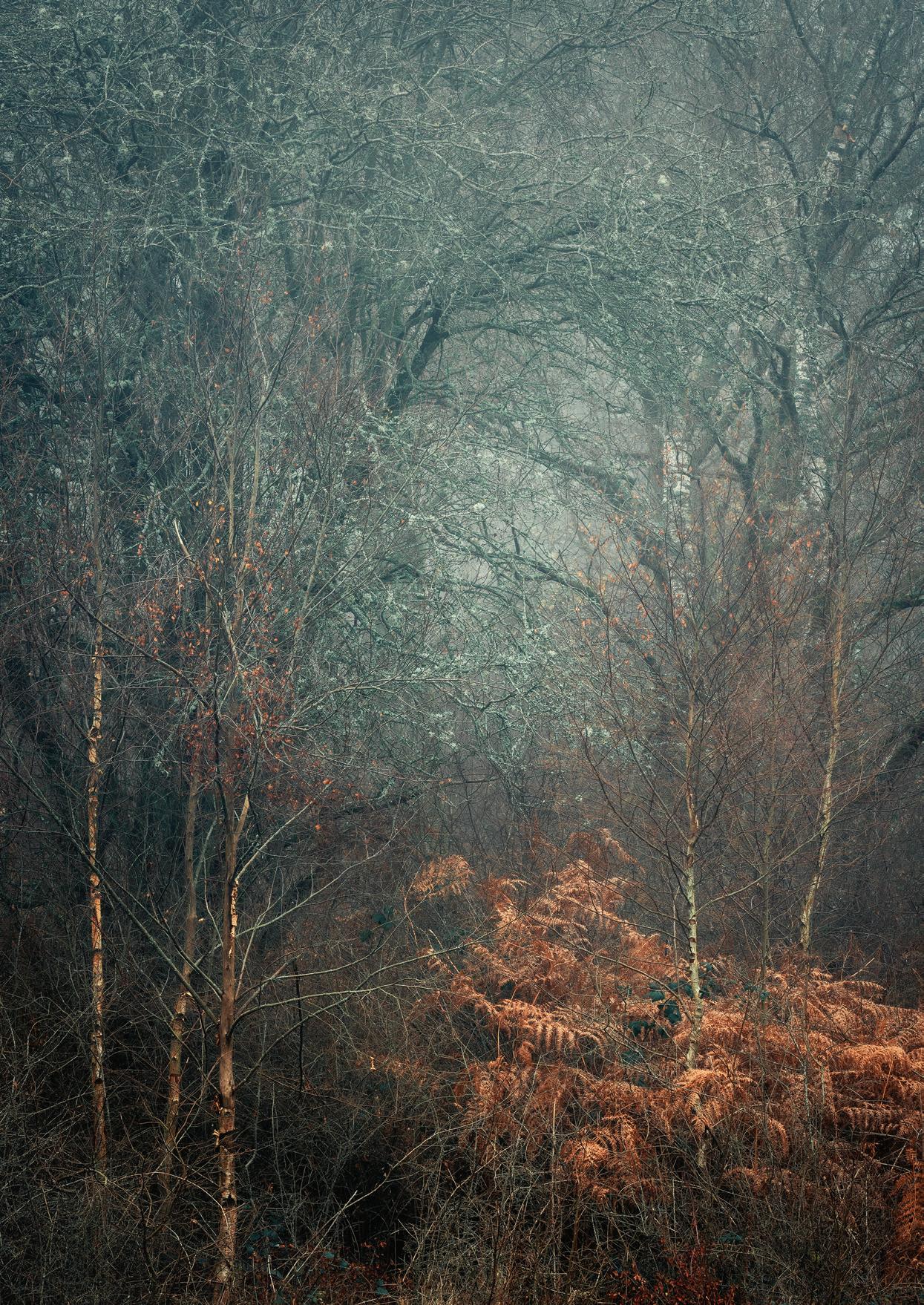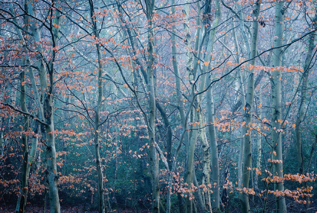 Woodland can be a notoriously difficult location in which to compose meaningful images. It is hardly surprising though when you realise how complicated groups of trees can become in densely wooded areas. The phrase ‘can’t see the wood for the trees’ often comes to mind. Photographing woodland for many years, together with my background in graphic design, has certainly aided me in being able to make order out of chaos.