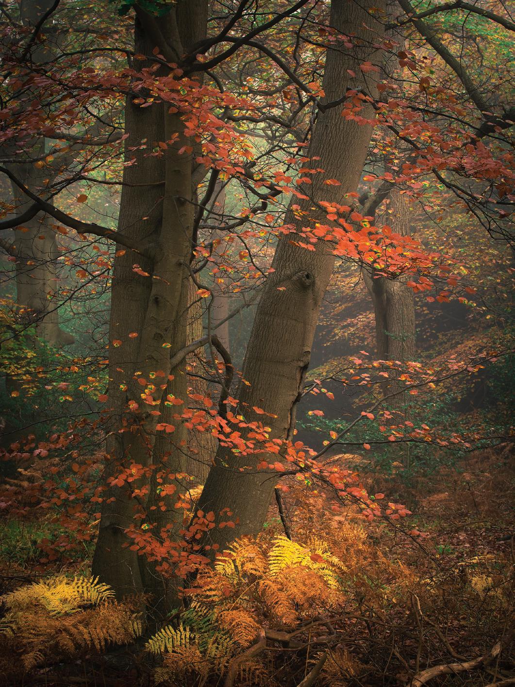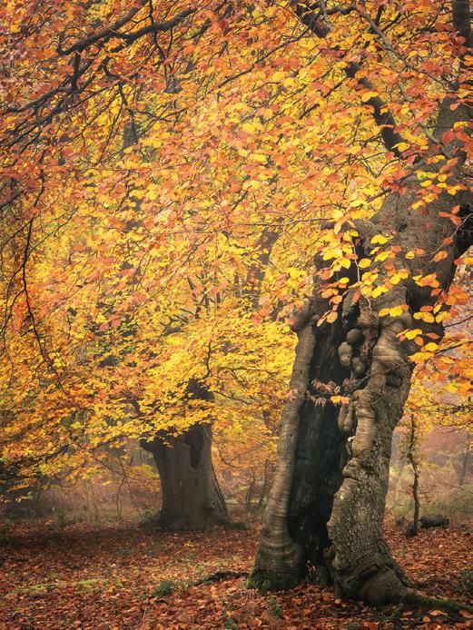 the United Kingdom it is usually the second or third week in November that is the best time for the honey-dripped glory that most people think of as autumn. I much prefer overcast days, avoiding any harsh contrast. That said, strong sunlight with blue skies can also offer the added bonus of dramatic contre-jour lighting. If we are fortunate enough, it is fog and mist that certainly produce the most atmospheric images.