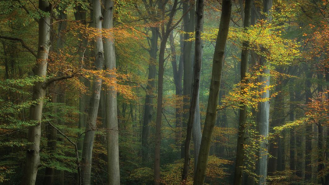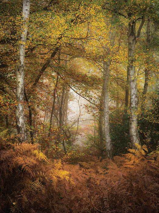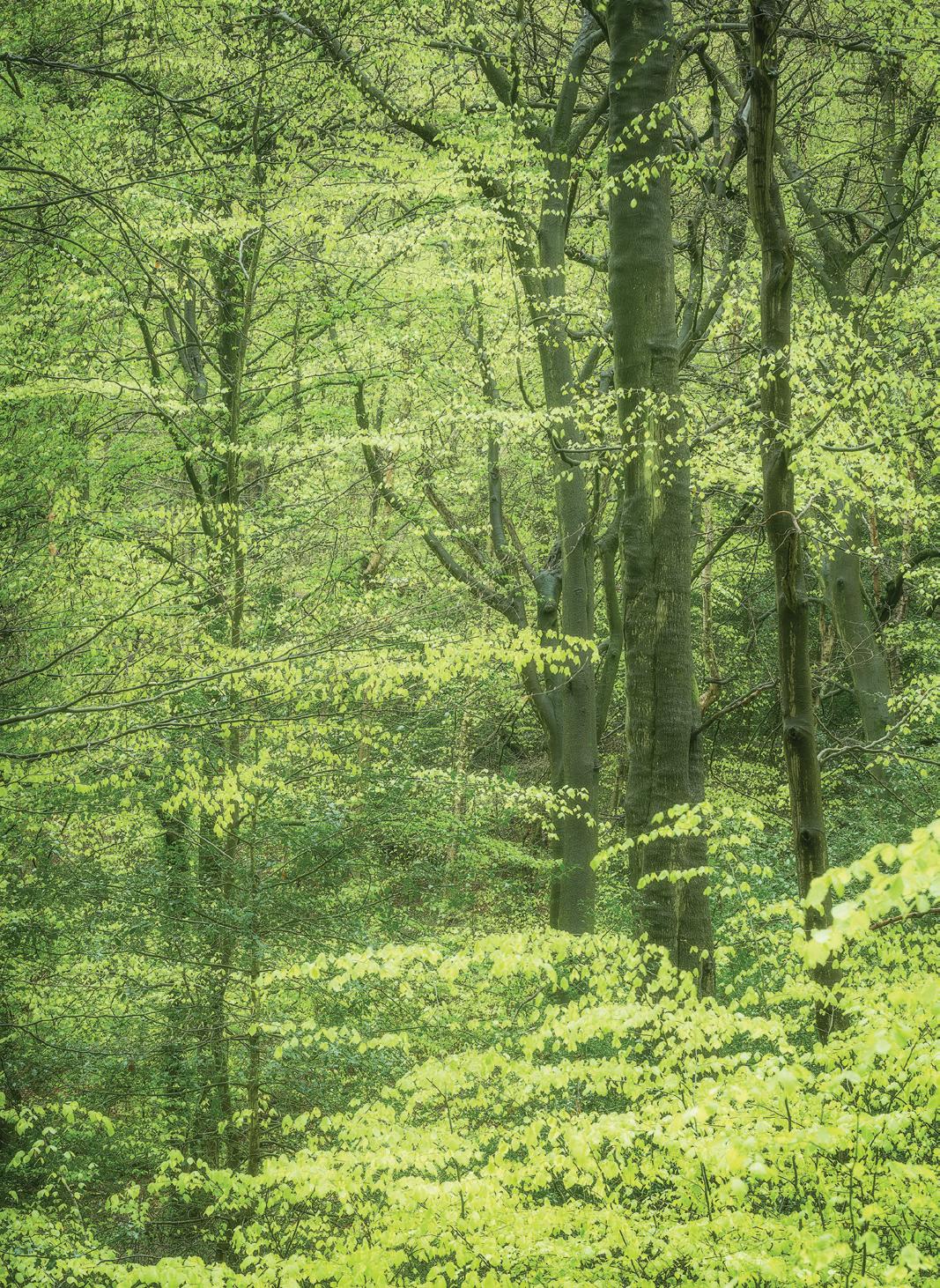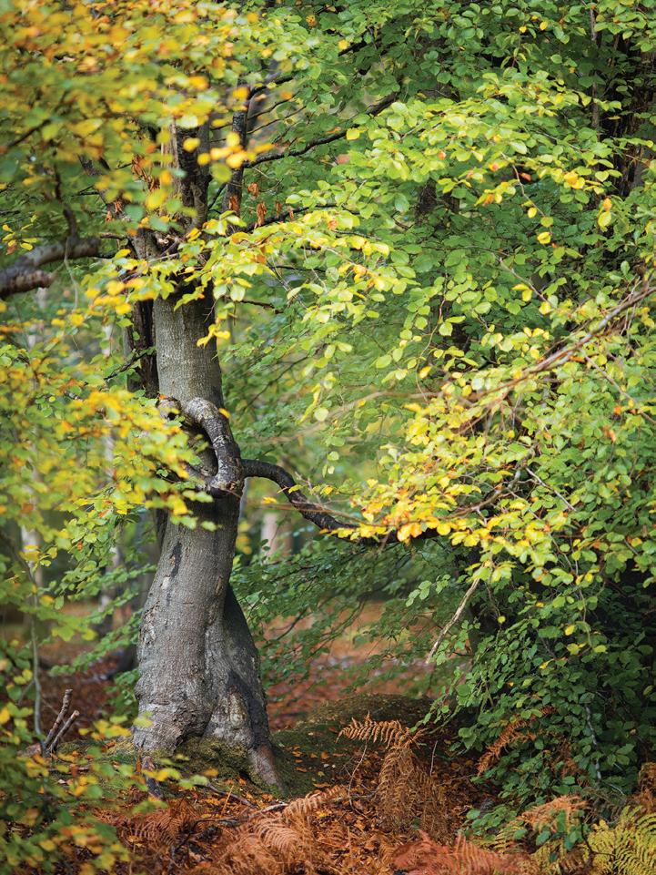 Trees such as beech, oak and birch are still in full leaf but, gradually, a few begin to turn yellow; this mixture of colour I often refer to as ‘lemon-and-lime’ time. I tend to visit on dull, ‘quiet light’ days and look for dense areas of trees or on a slope where one can exclude any bright areas of sky.