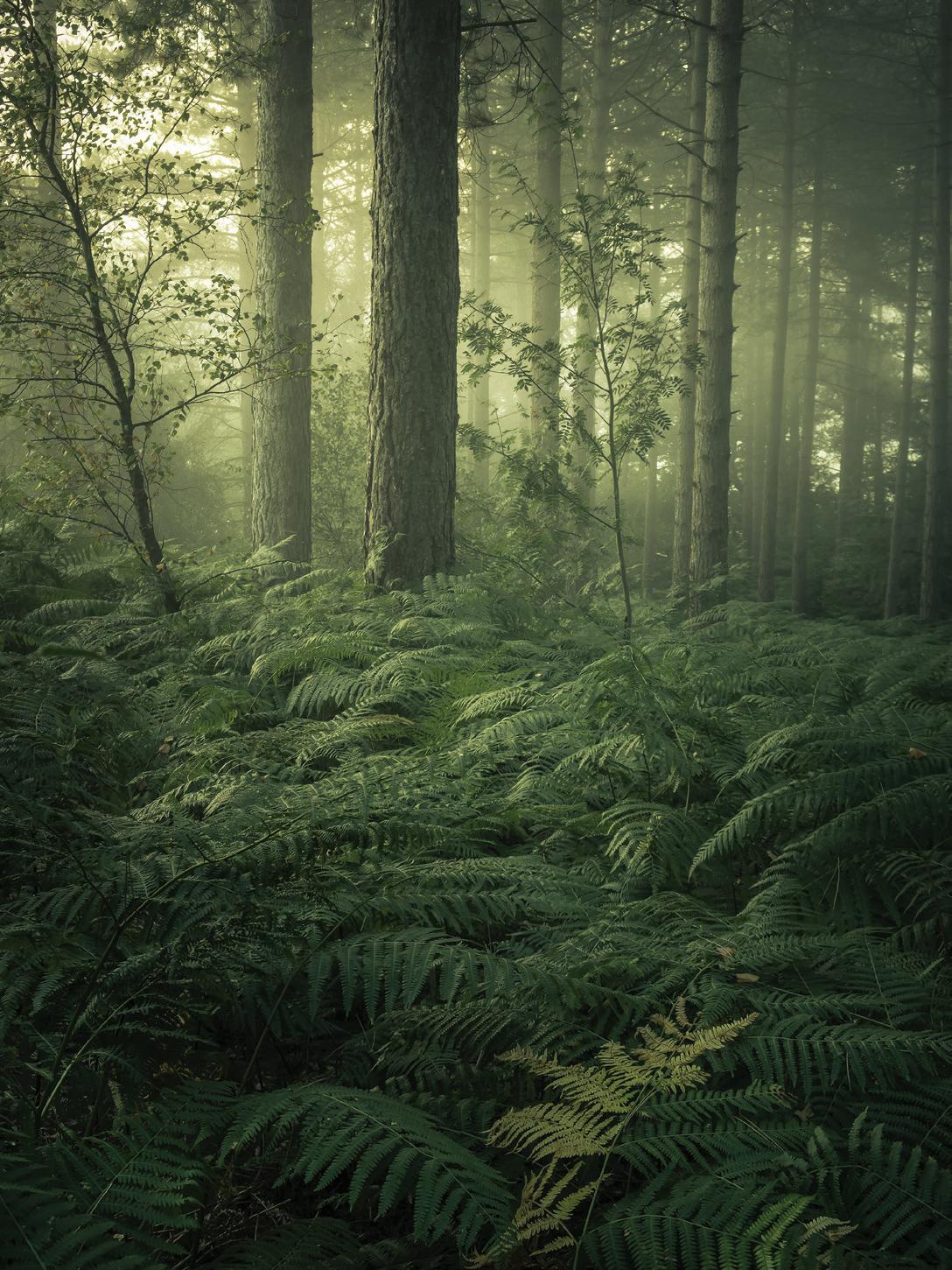 When running my woodland workshops I find that many people walk straight into woodlands expecting compositions to come to them. Unfortunately, trees cannot just uproot themselves and gather into aesthetically pleasing groups. Sometimes even I find it very difficult to see compositions, therefore I often look for a small clearing where I can detach myself from my bag and tripod. For five to ten minutes I will just stand in complete silence. Gradually I begin to attune myself to the surroundings. It may sound somewhat of a cliché but I try and adopt a state of mindfulness. It is at this point that I begin to see and understand what it is I am looking at and identify compositions that I would have otherwise walked past or disregarded as being too busy. Peripheral vision can play an important part too, guiding one’s eye towards light falling on a particular area or object.