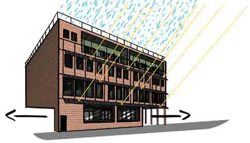 Using a glulam diagrid and 5-ply clt floorings, we are able to handle laterial loads, freeing the location of the core. Moving away from a formal diagrid expression, we utilize a panelized facade system with three panel types. This enables easy assembly, and standardized manufacturing reducing material waste.
