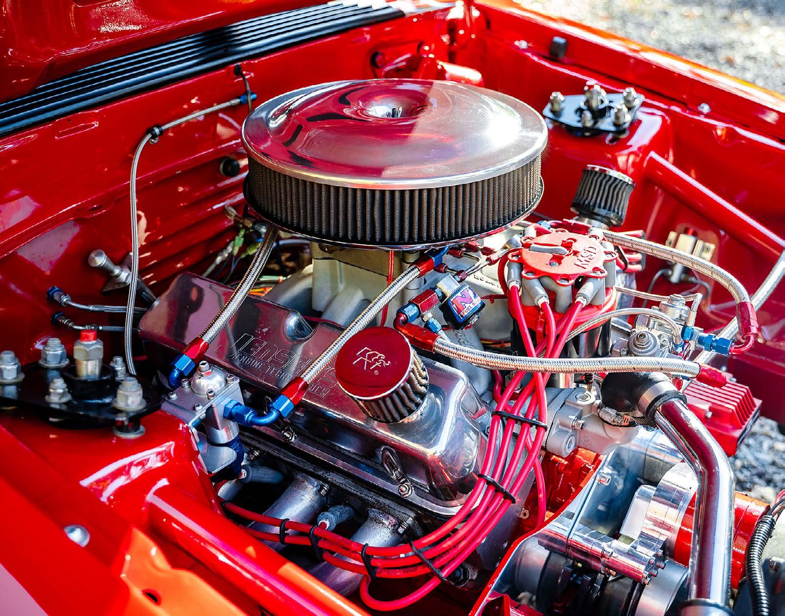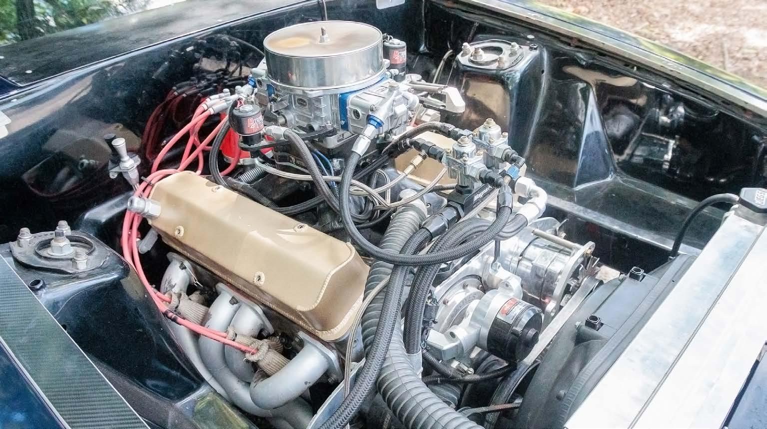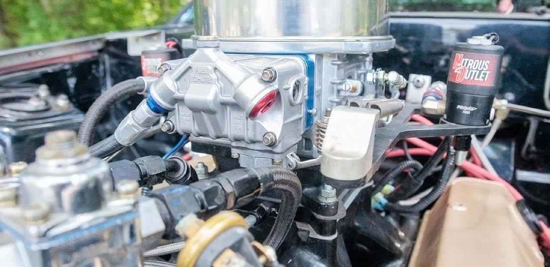 Dual Aerospace Components 350 fuel pumps keep the high octane fuel flowing for the carburetor and the nitrous system, and big tube headers collect into a 3.5-inch exhaust and Dynamax bullet mufflers to provide the spent gases an easy exit path.