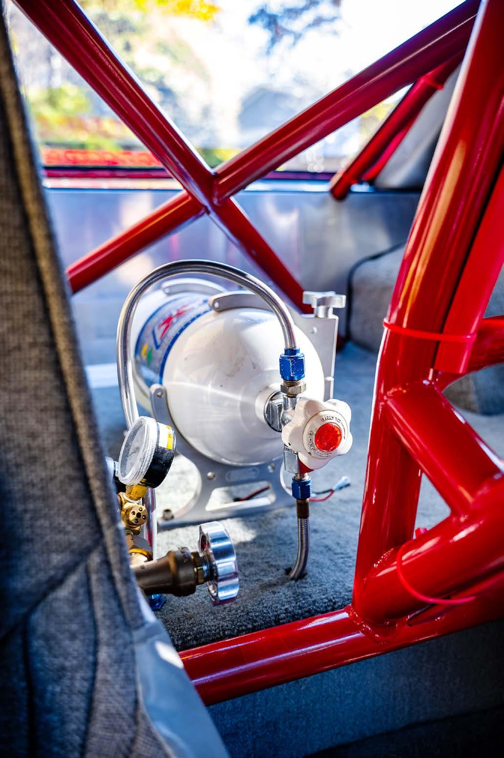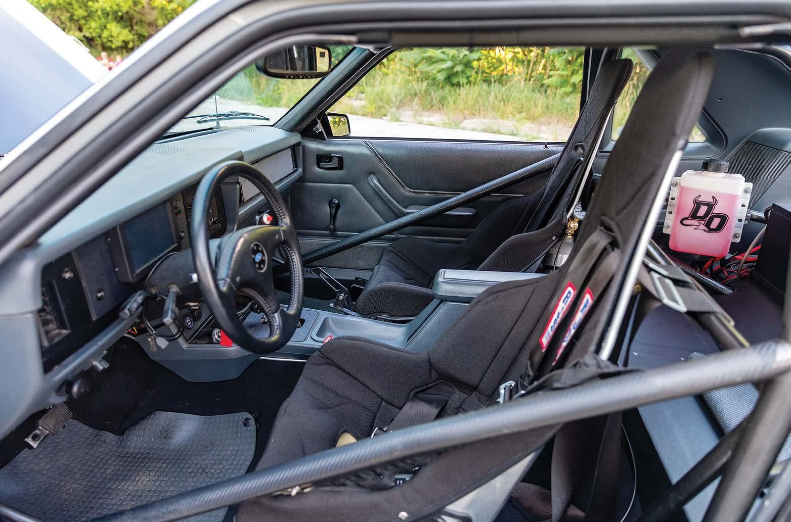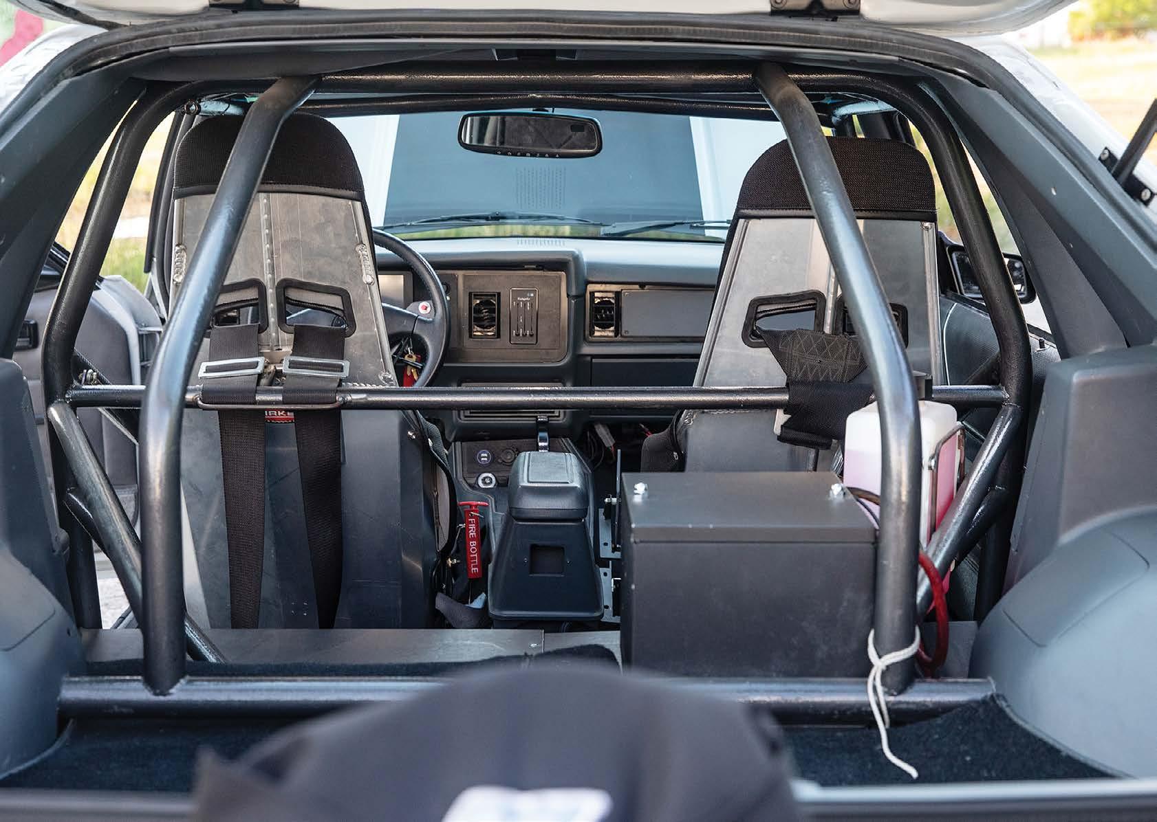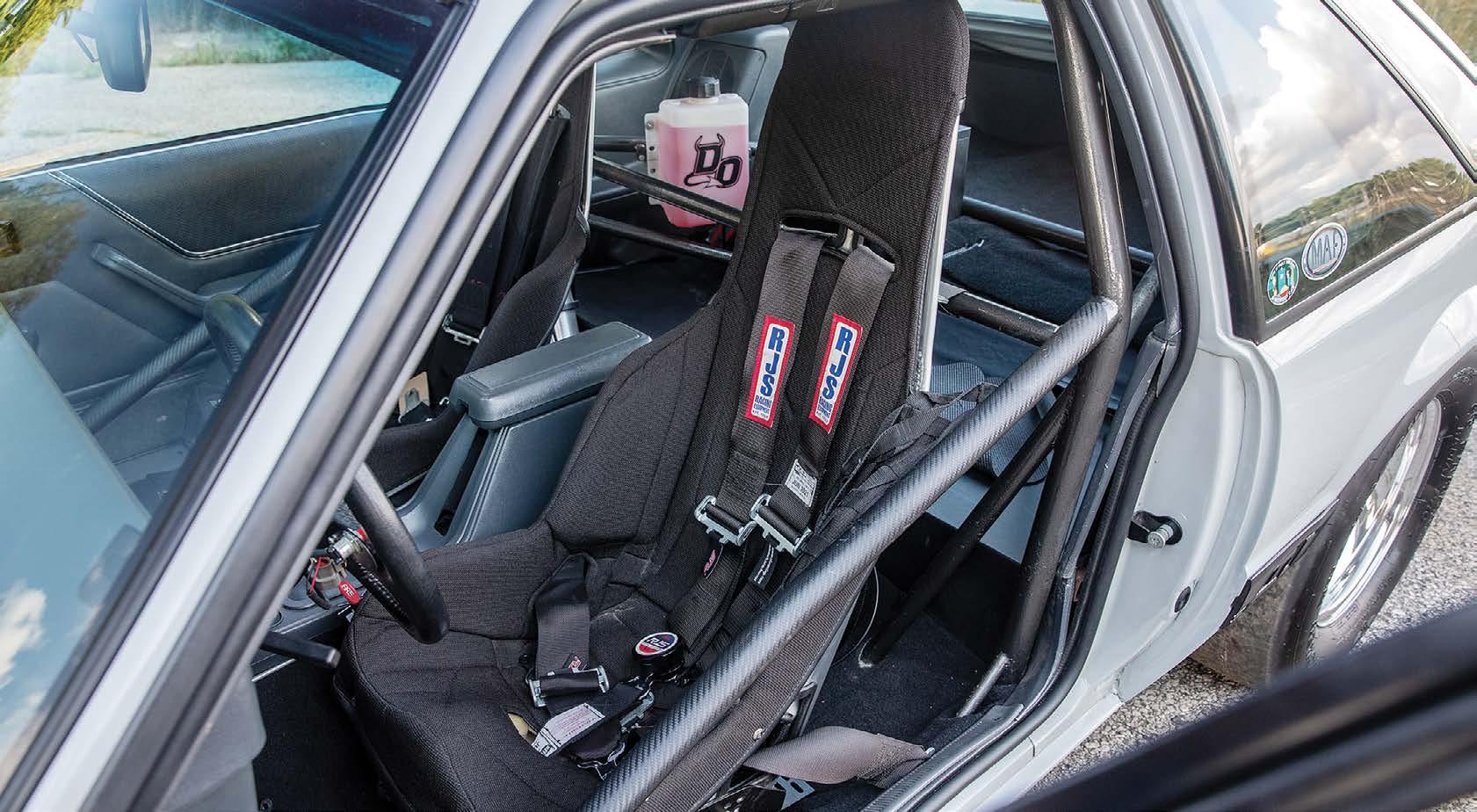 Aluminum racing seats wear gray upholstered covers and RJS harnesses, and Tankalavage fabricated his own rear seat delete that works with a Wolfe Racecraft rear firewall which ensures