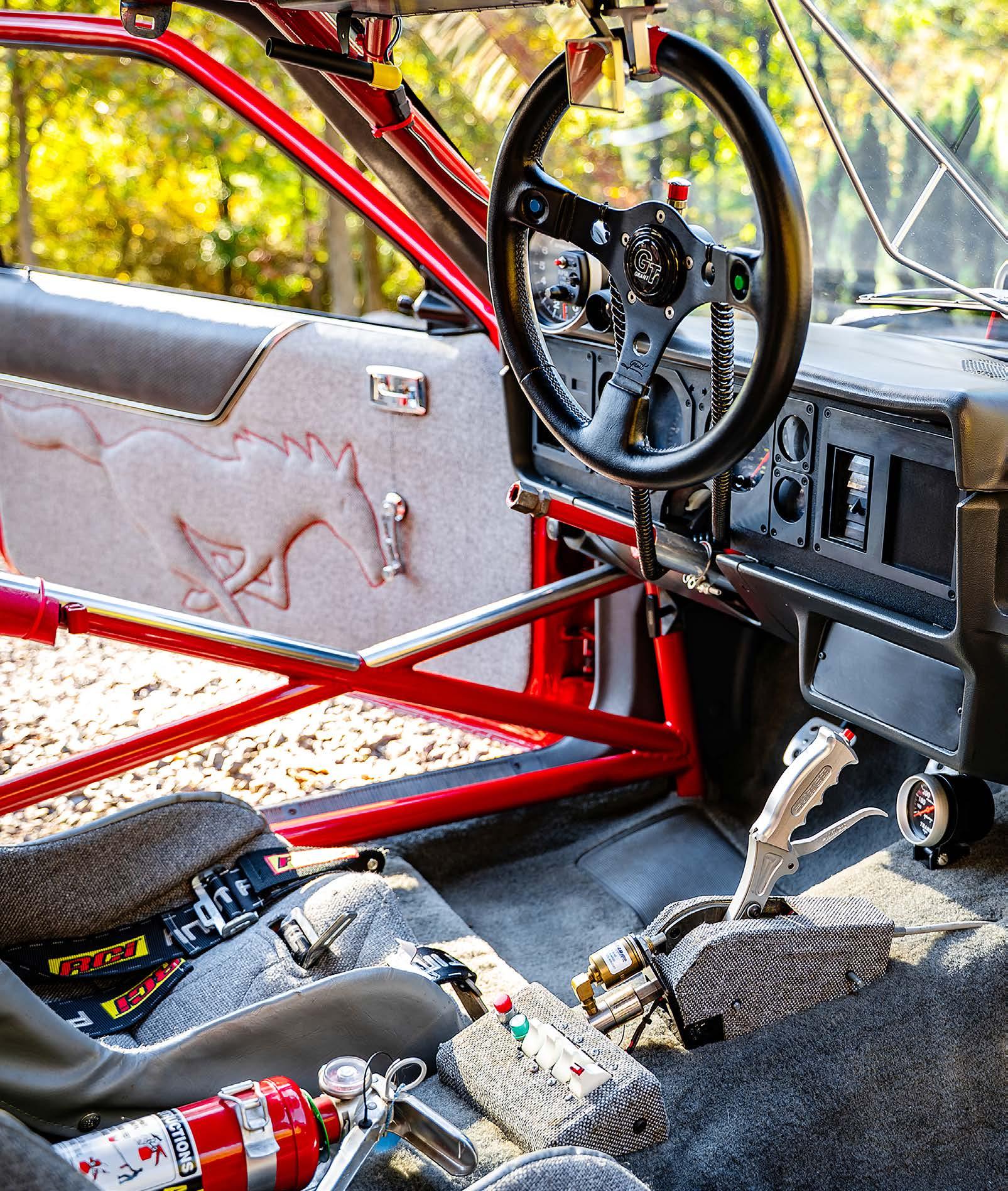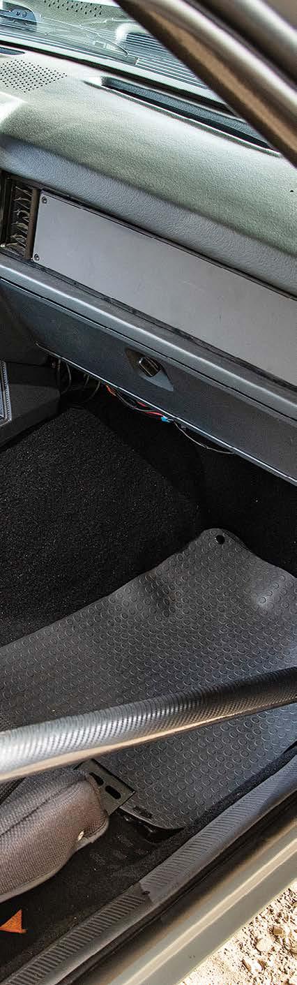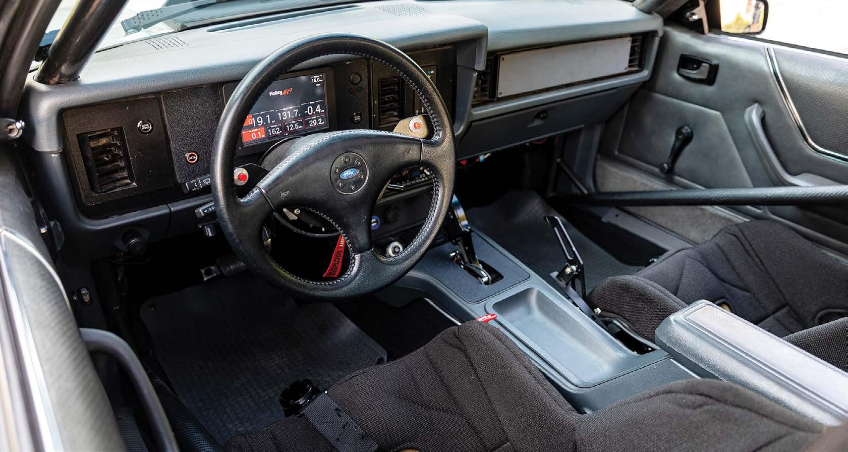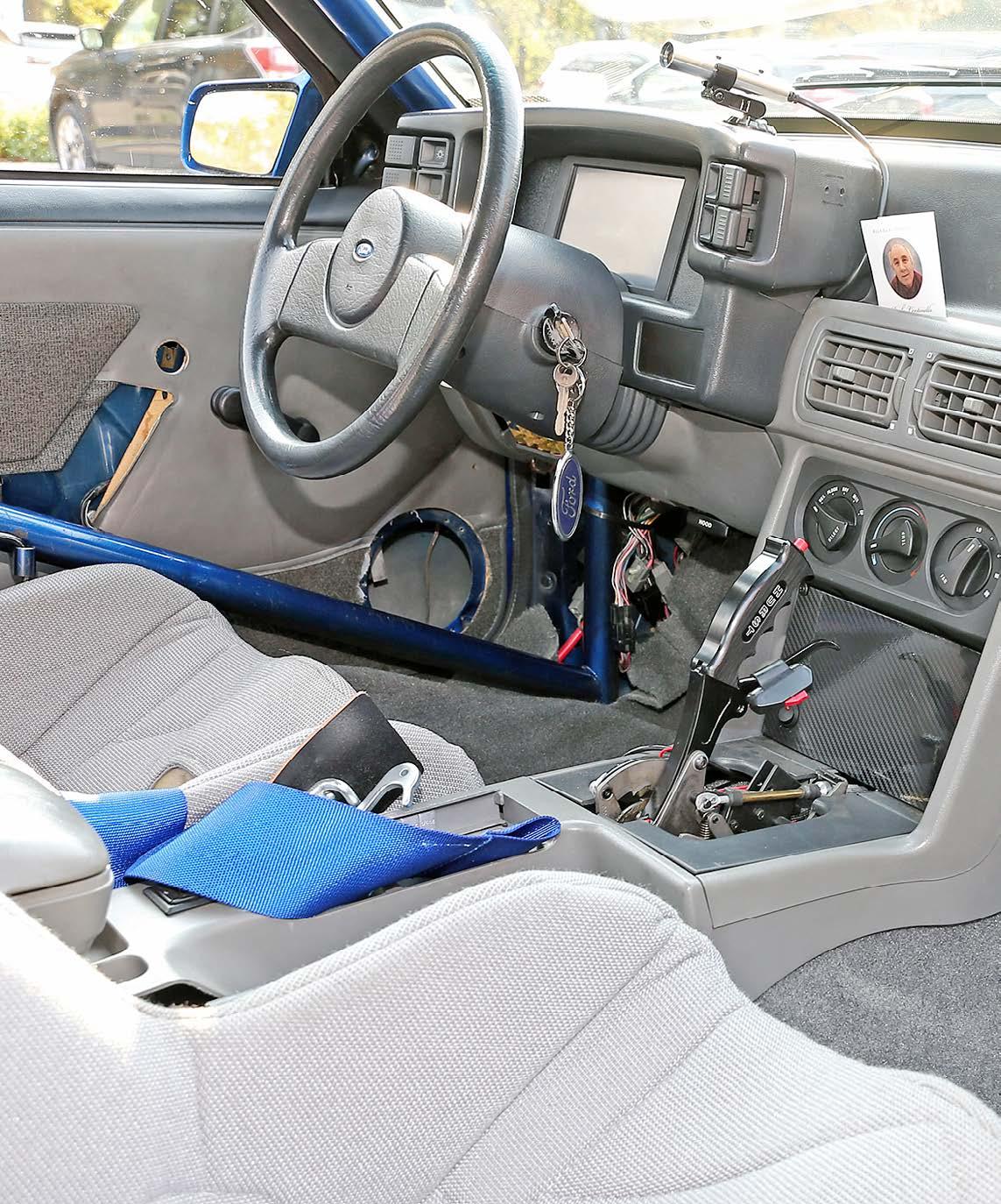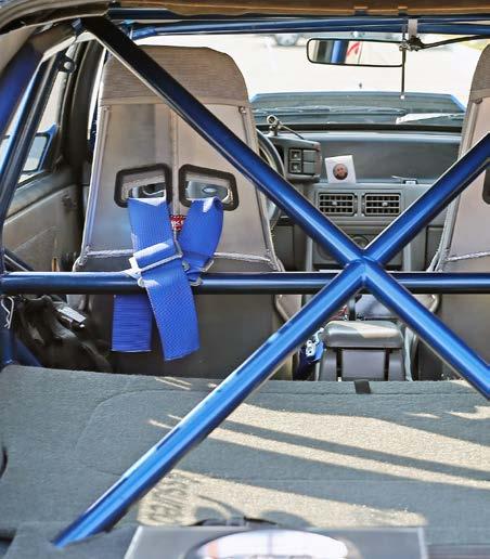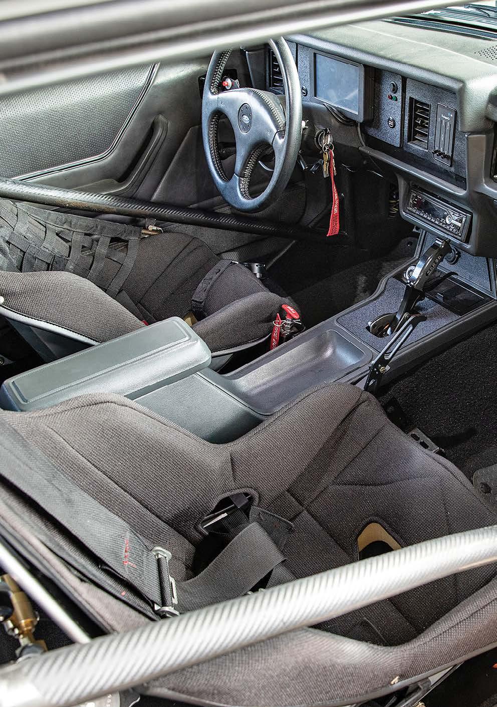 Aluminum racing seats wear gray upholstered covers and RJS harnesses, and Tankalavage fabricated his own rear seat delete that works with a Wolfe Racecraft rear firewall which ensures
