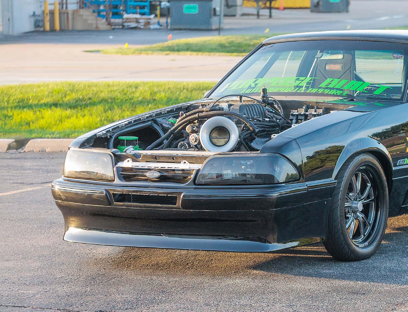 All kidding aside, how often to do you see someone swap to an LS, and then return to a Ford mill, especially in a Fox Body Stang? Not very! Well Tim Flanders is that guy and his slick, ultra-clean badass turbo Coyote Mustang will have a bunch of those LS swap Stangs peeing themselves when he rips off 8.80 ETs, and