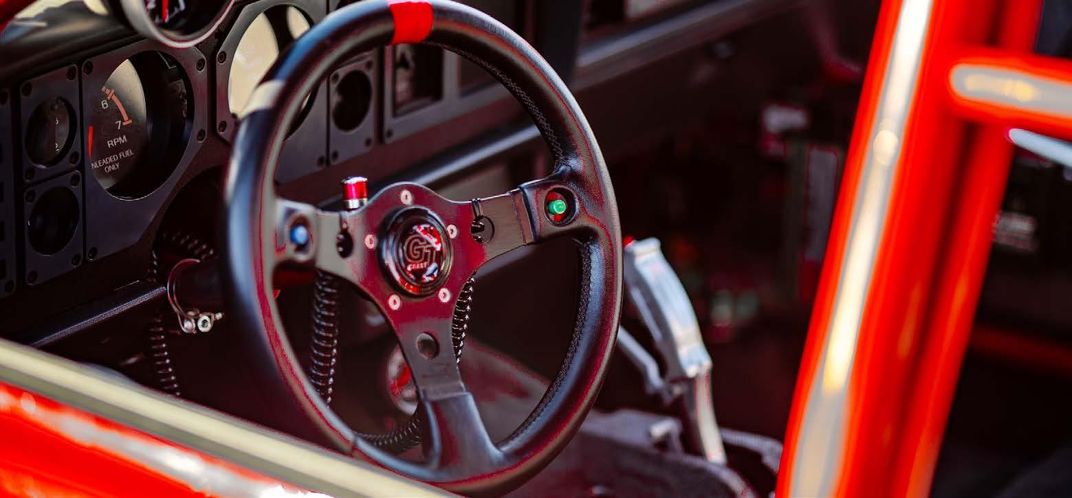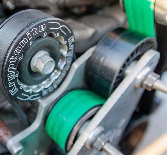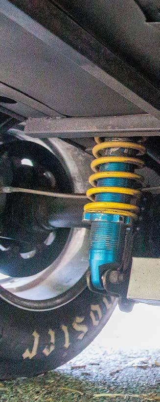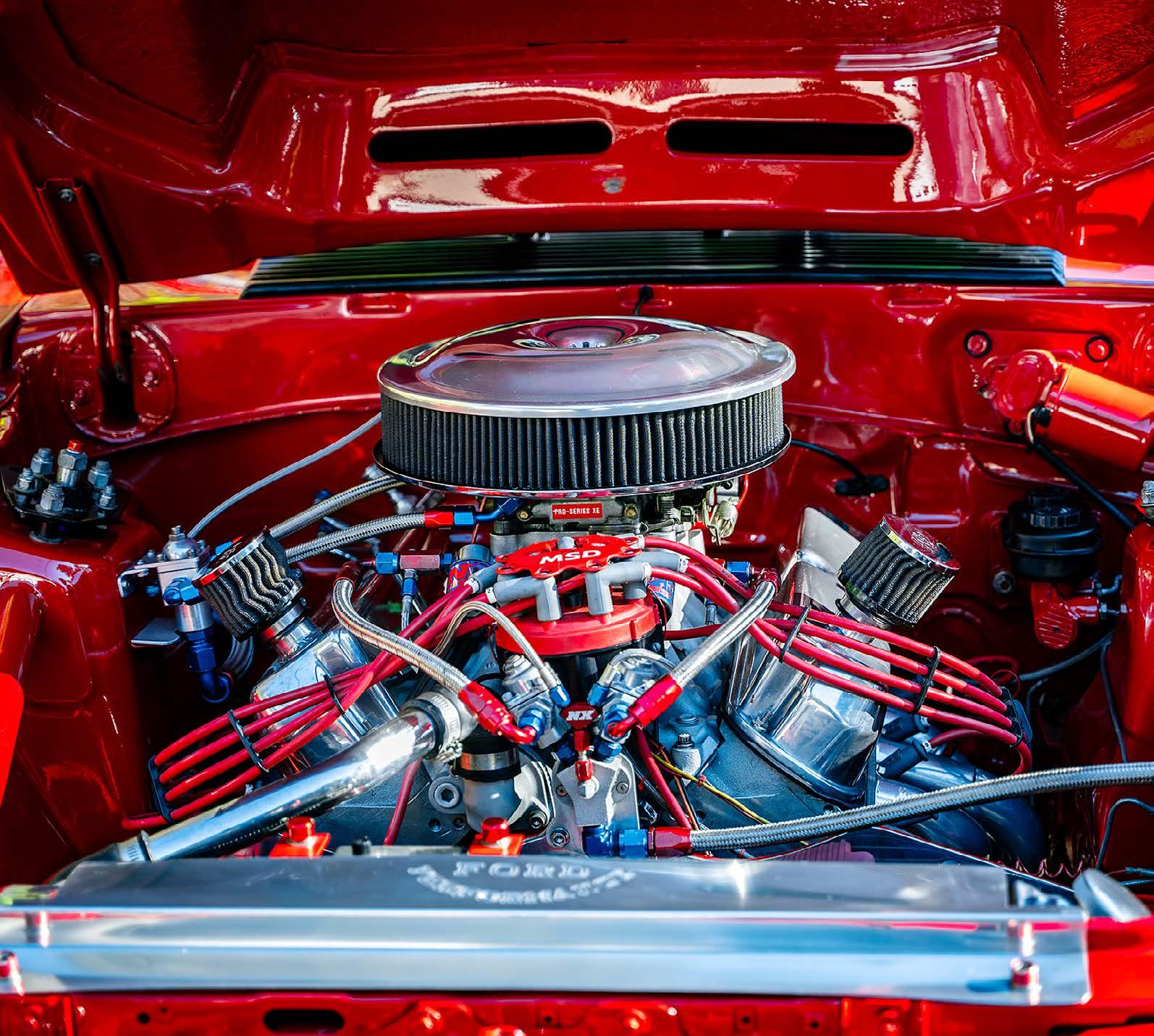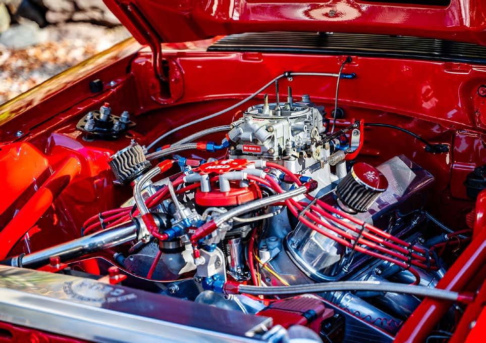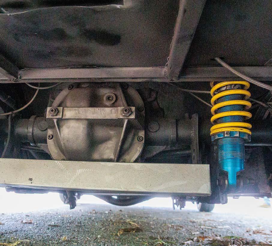 torque converter, a twospeed Powerglide built by Tom Zimmerman at Kool Kars converts the engine performance into propulsion. Tankalavage narrowed an 8.8 Ford rearend housing and fitted it with a Moser Engineering spool with 3.73:1 gears and Moser gun-drilled 35-spline axle shafts.