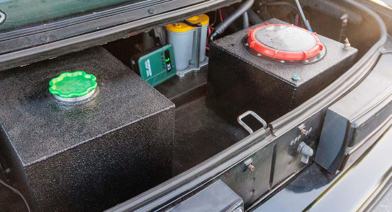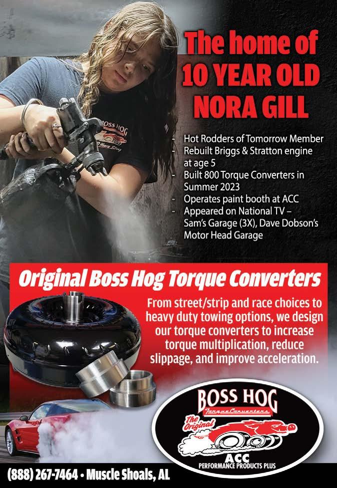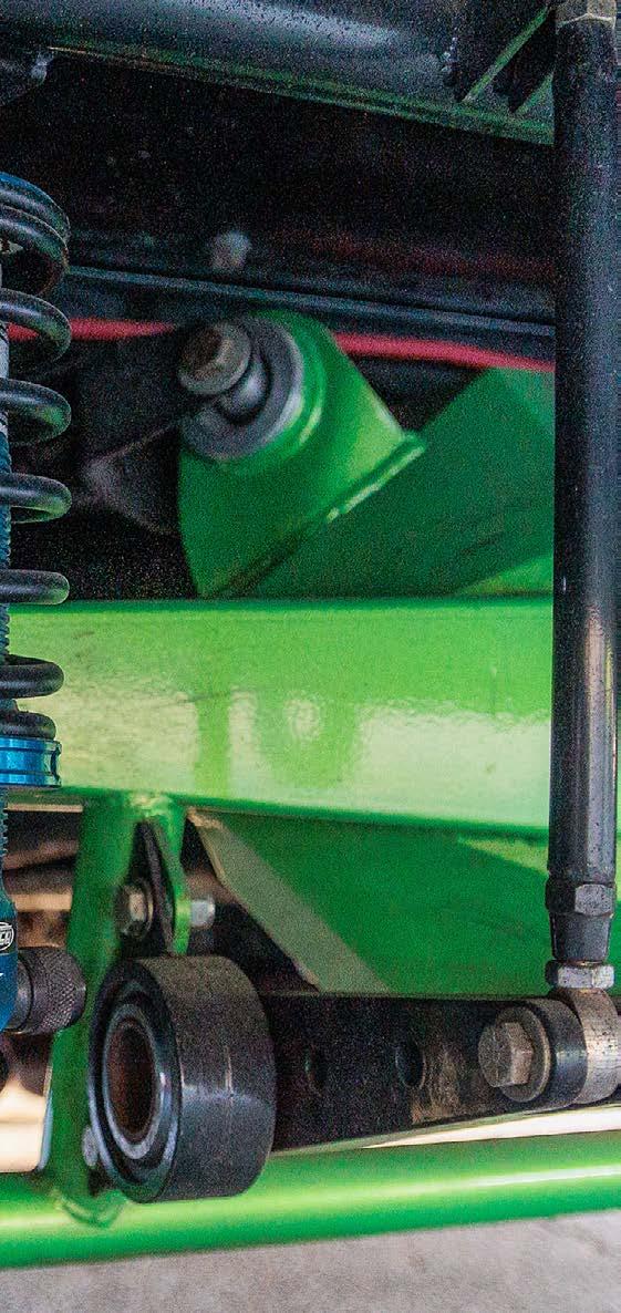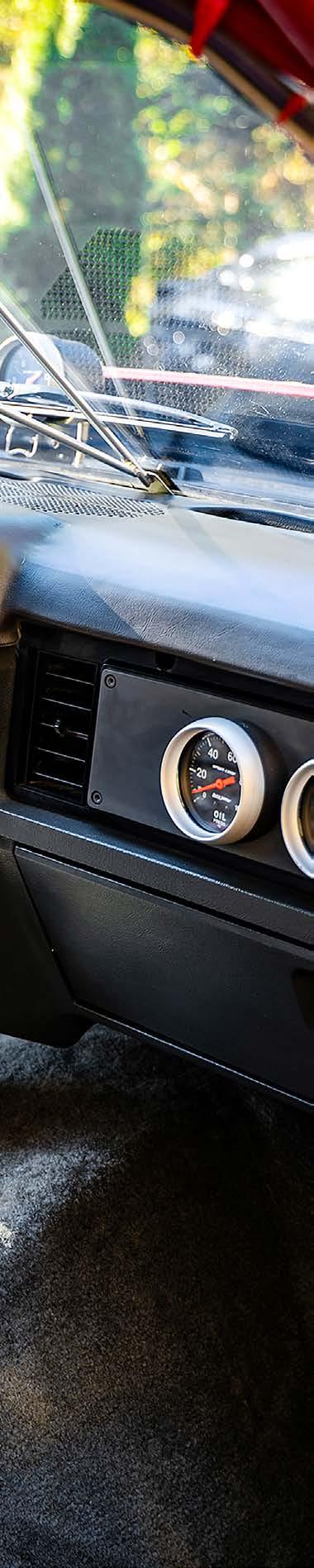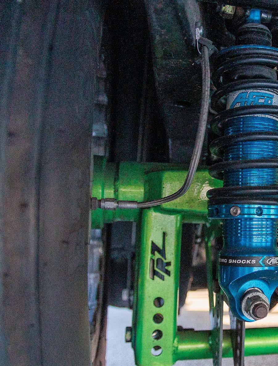 torque converter, a twospeed Powerglide built by Tom Zimmerman at Kool Kars converts the engine performance into propulsion. Tankalavage narrowed an 8.8 Ford rearend housing and fitted it with a Moser Engineering spool with 3.73:1 gears and Moser gun-drilled 35-spline axle shafts.