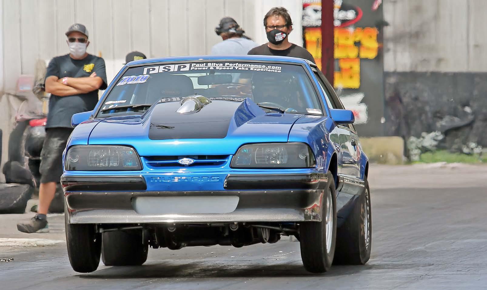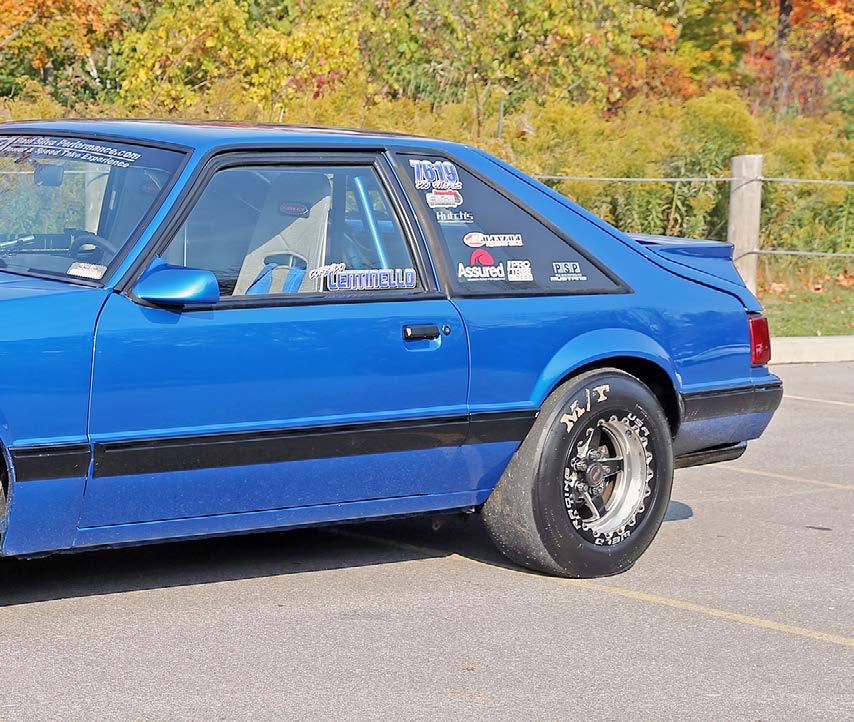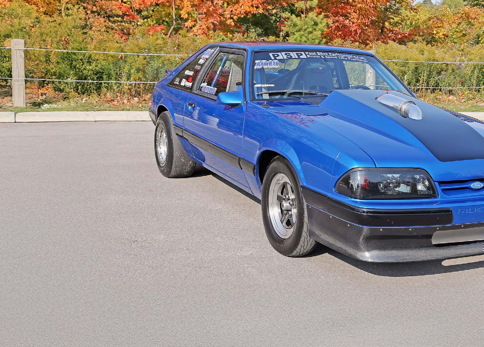 efforts, now done on the track, to his dad. He would soon hook up with Paul Silva from PSP and start working on plans to build a dedicated class car that would dominate the strip. At the time, the Street 275 class was starting to take hold in Ontario, so they built the Mustang for it. Unfortunately it would change to a 5.50 index class, and since Corrado’s passion was heads-up racing, some decisions needed to be made.