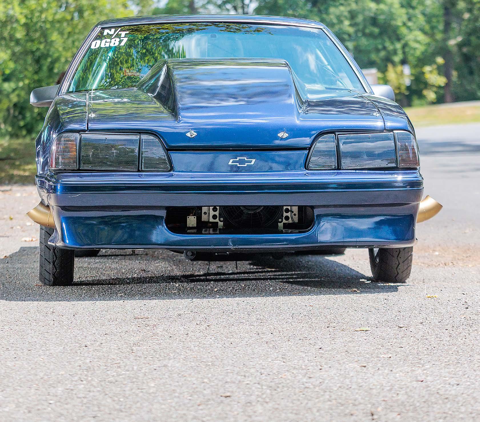 The car is an original bodied 1986 GT that, as we mentioned, has been in Flanders’ possession for over 20 years. The very mild 2” Fibertrends fiberglass hood gives the GT a bit more breathing room under the hood, not to men-