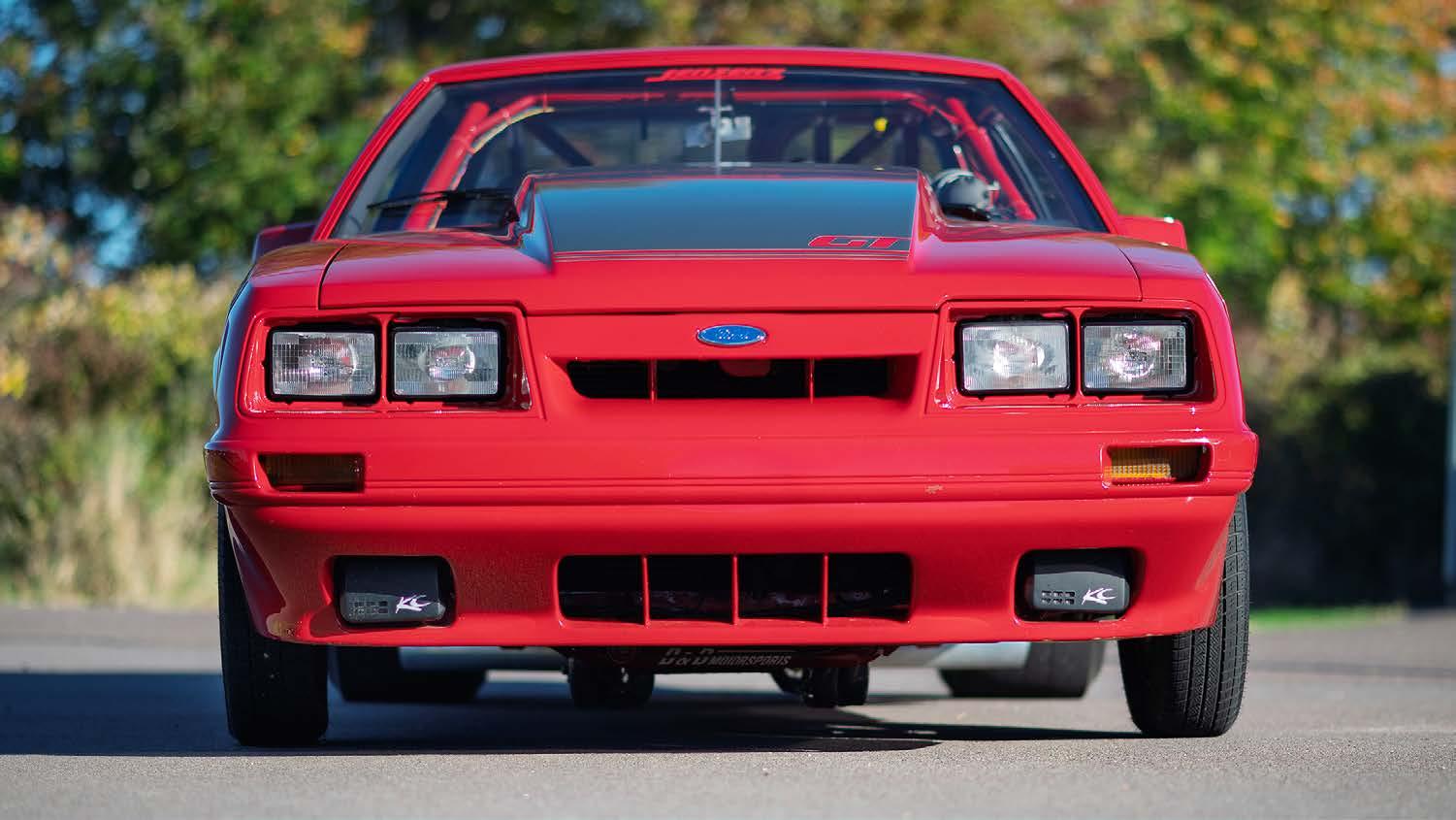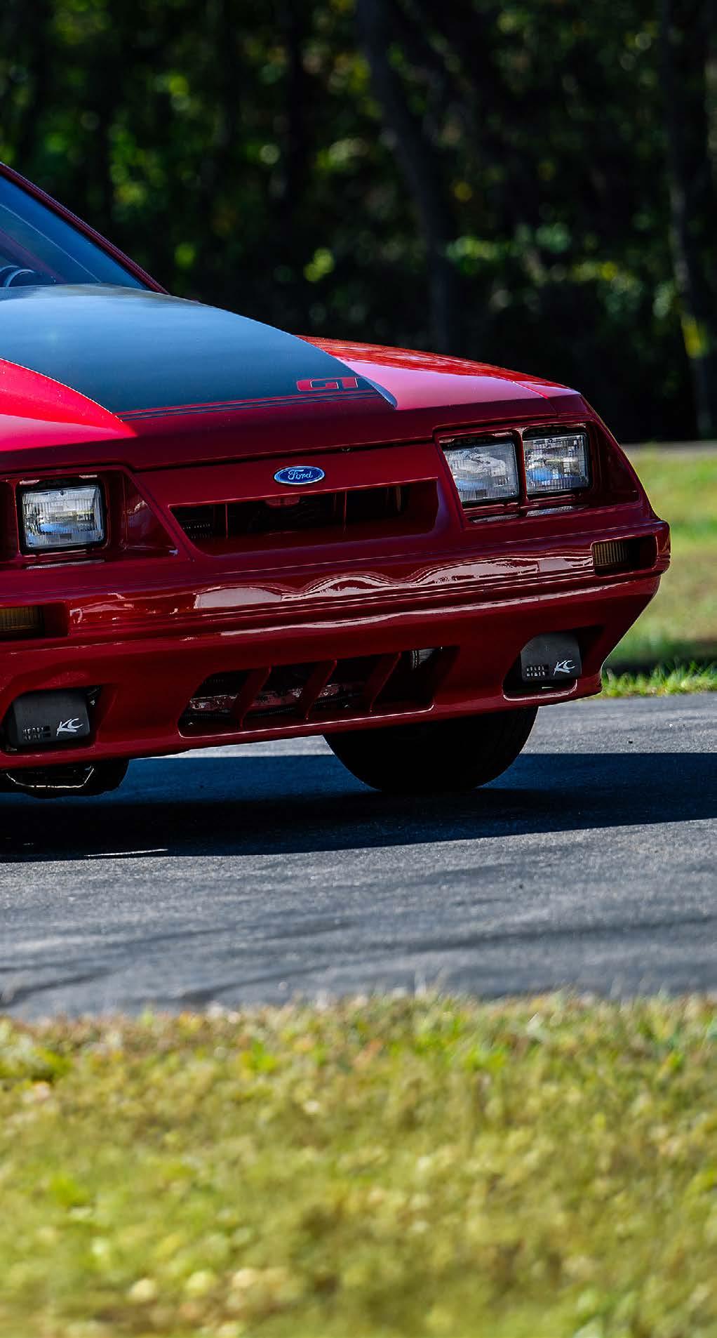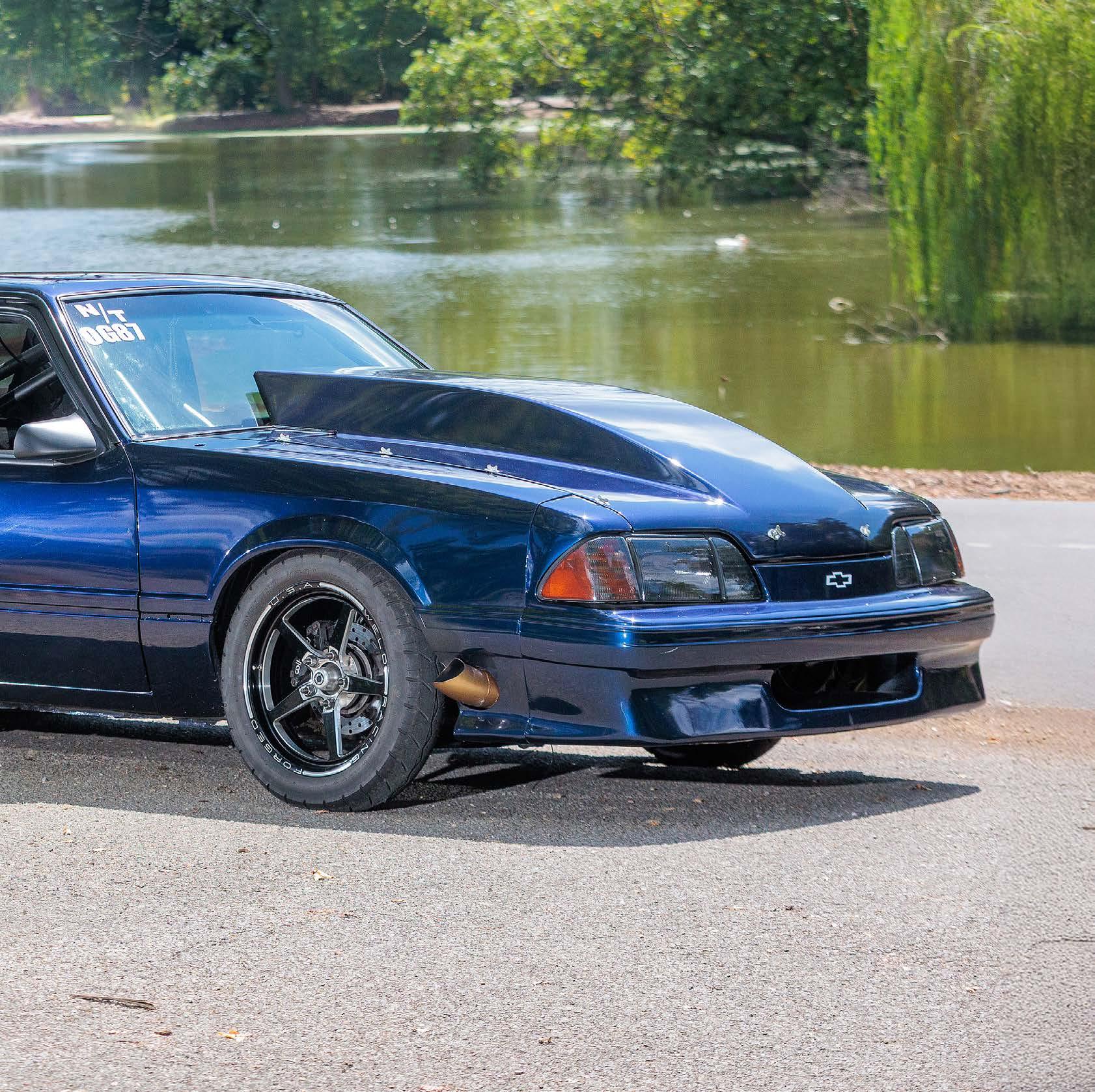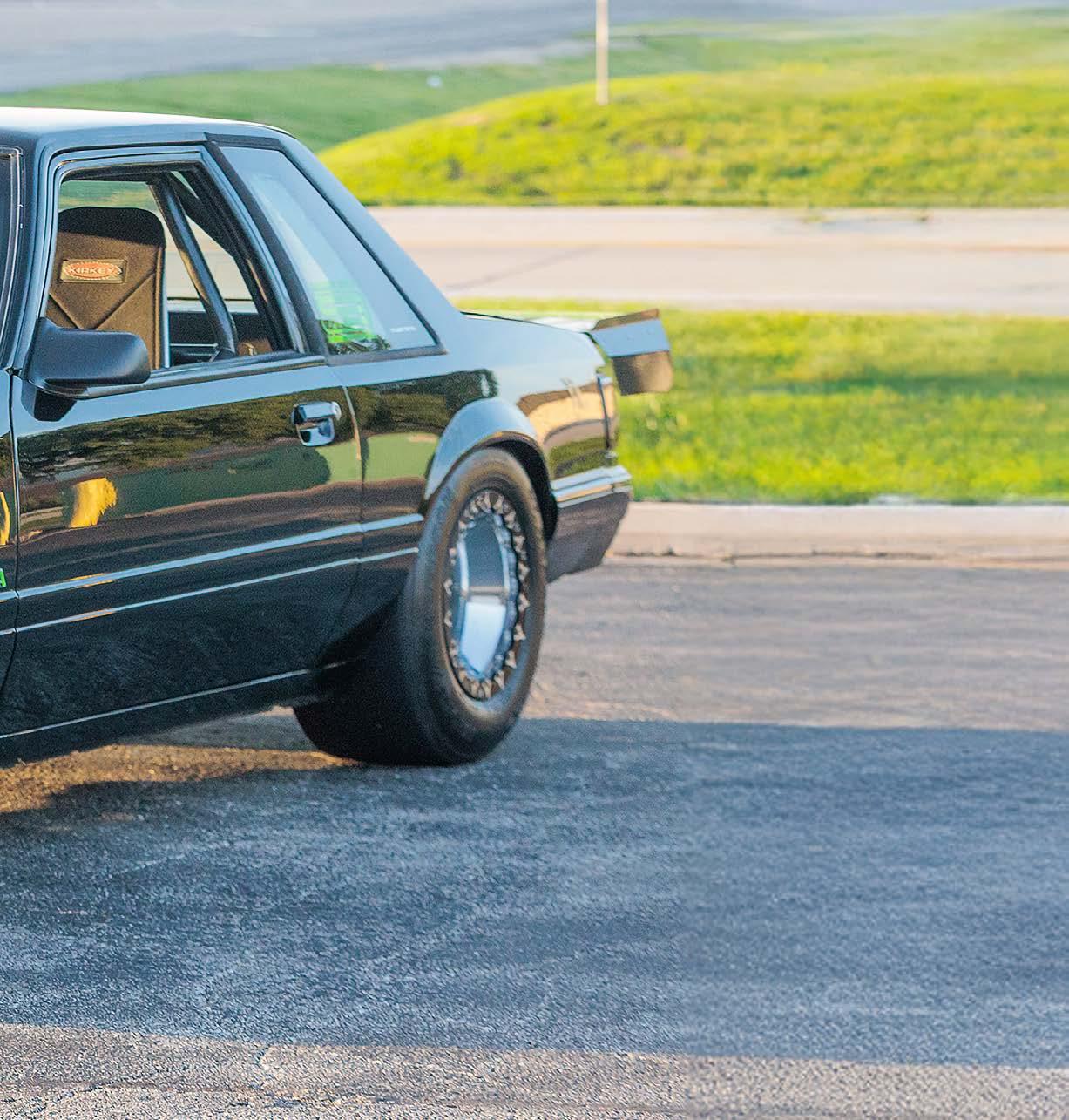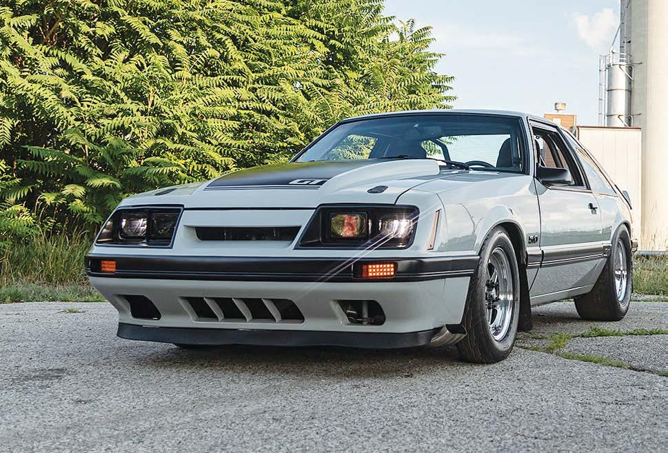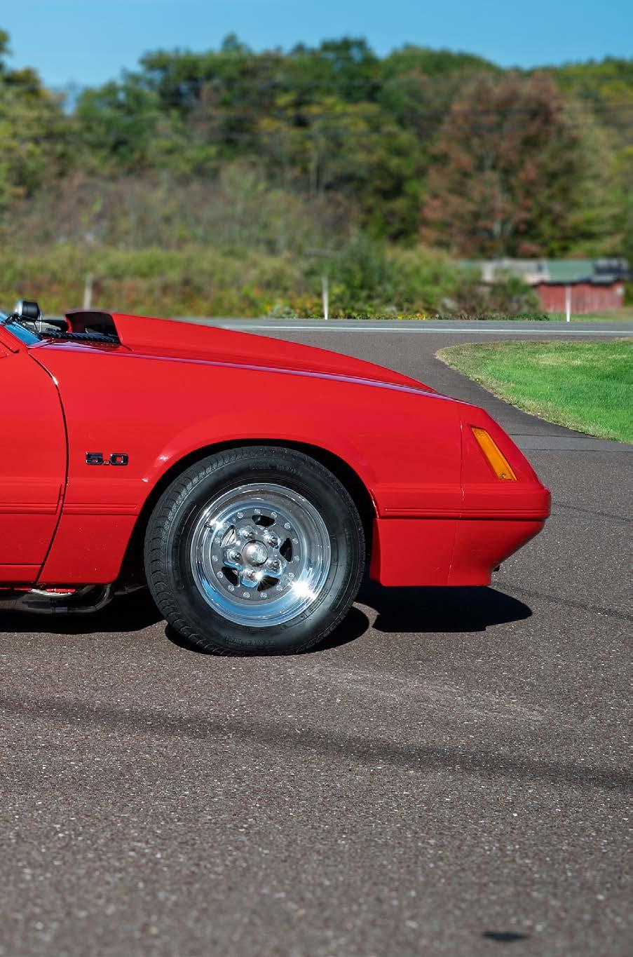 The slick paint on this Fox Body looks so nice because the owner is a painter by trade. The car is all original steel except for the fiberglass hood and carbon lower bumper extension