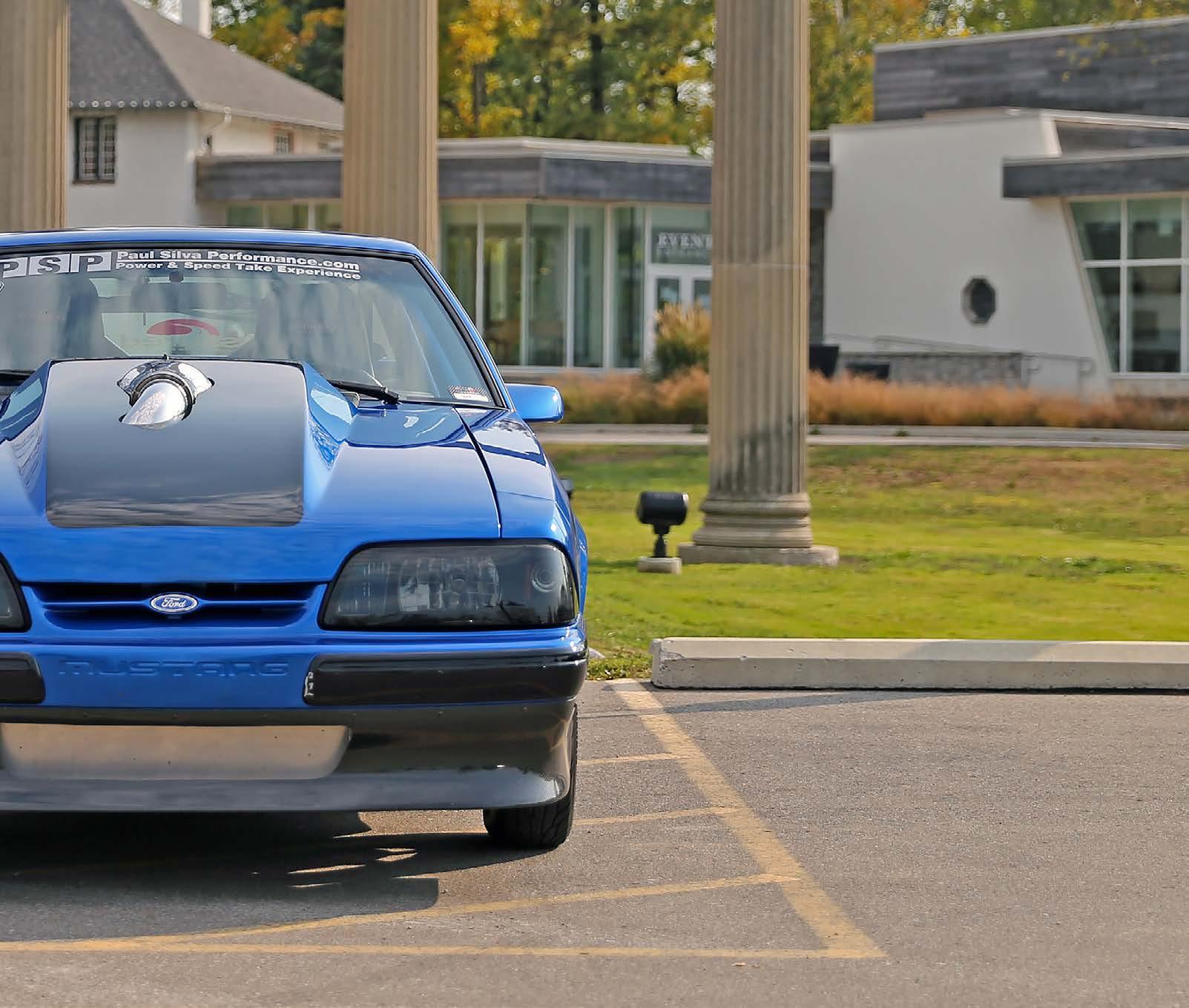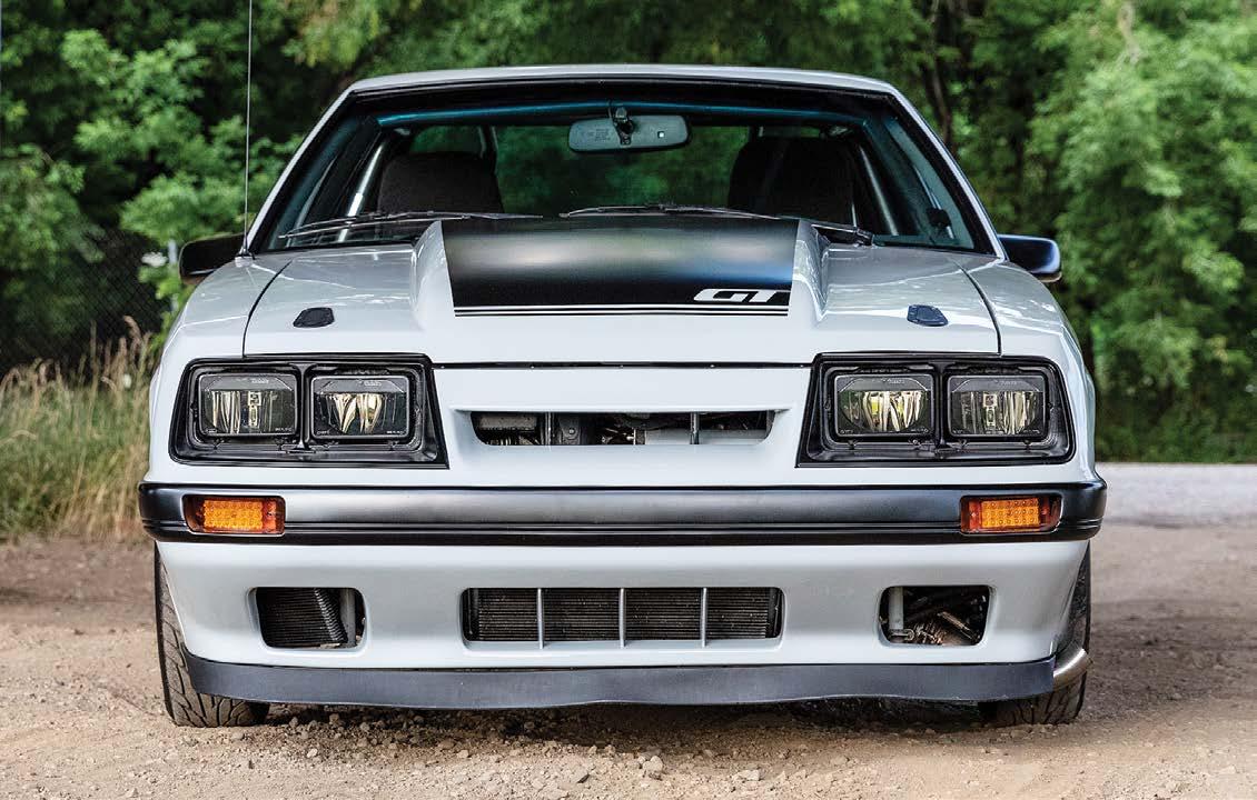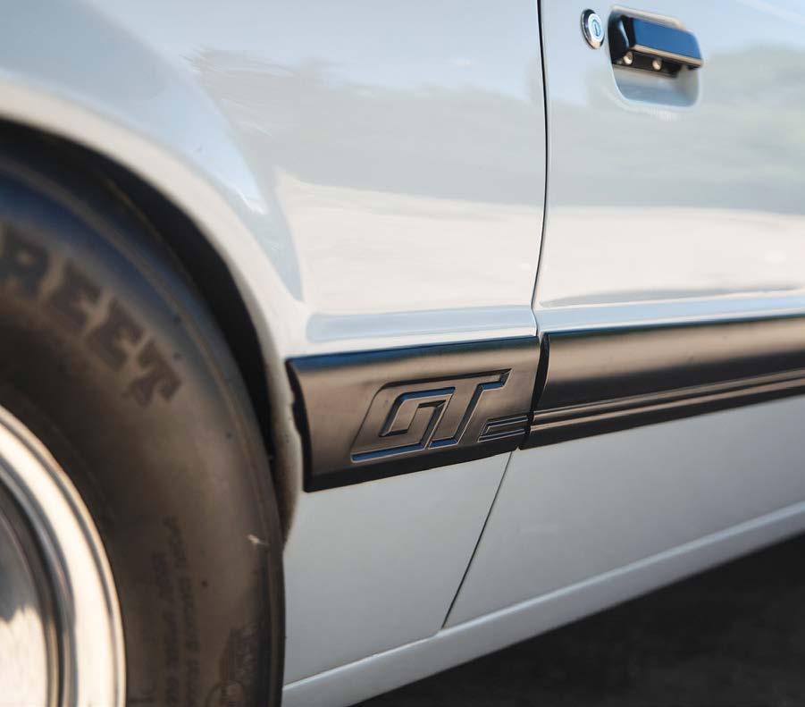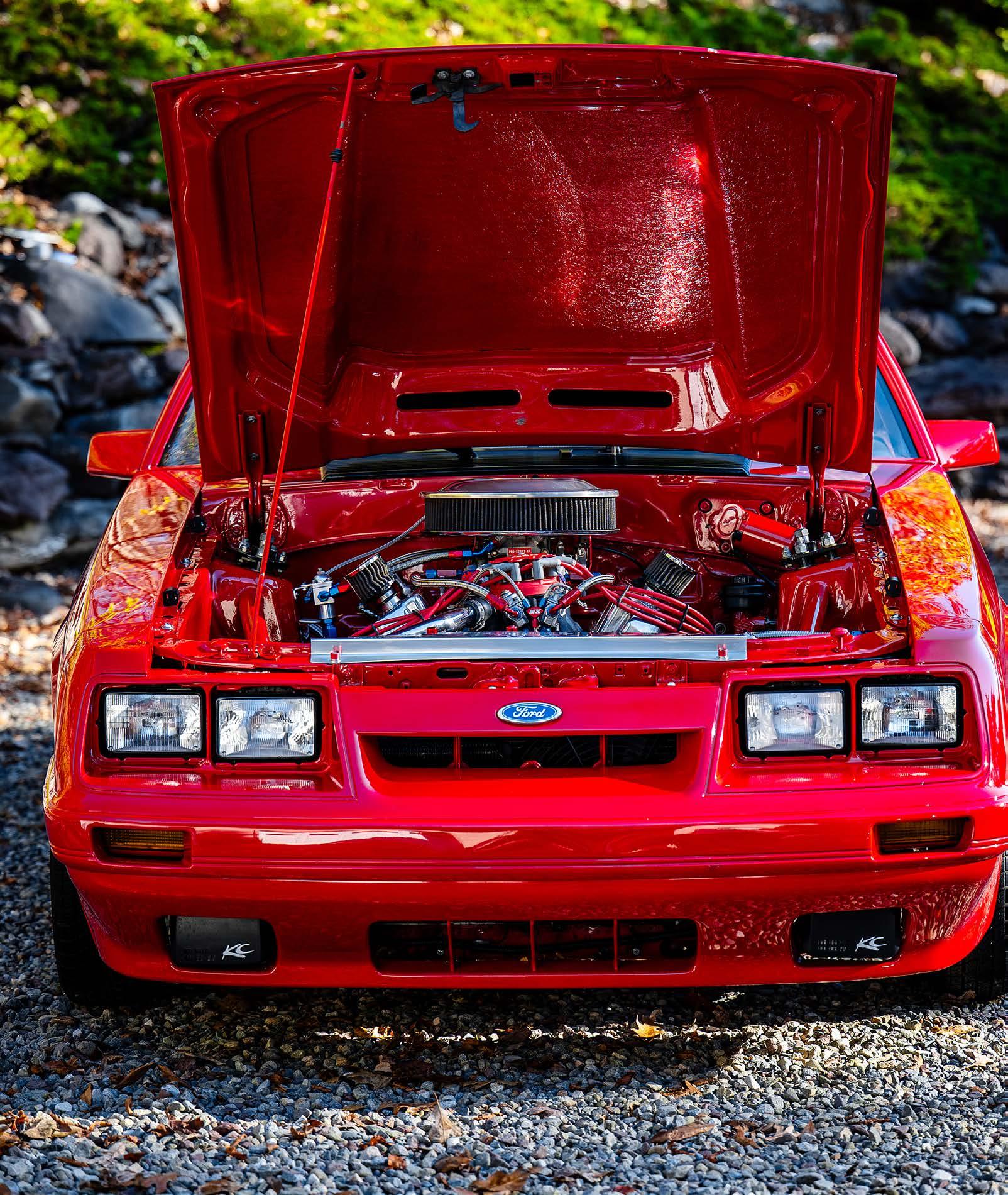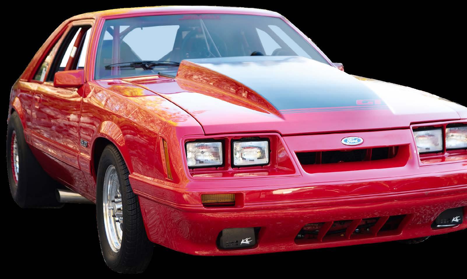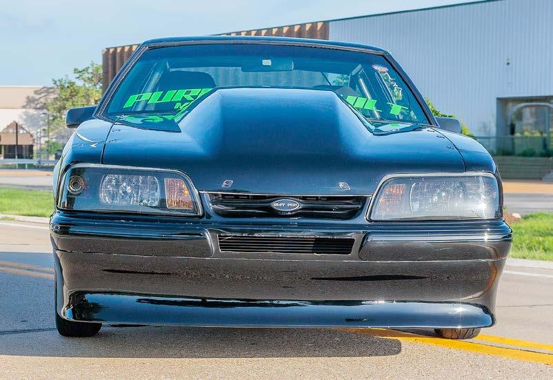 The slick paint on this Fox Body looks so nice because the owner is a painter by trade. The car is all original steel except for the fiberglass hood and carbon lower bumper extension