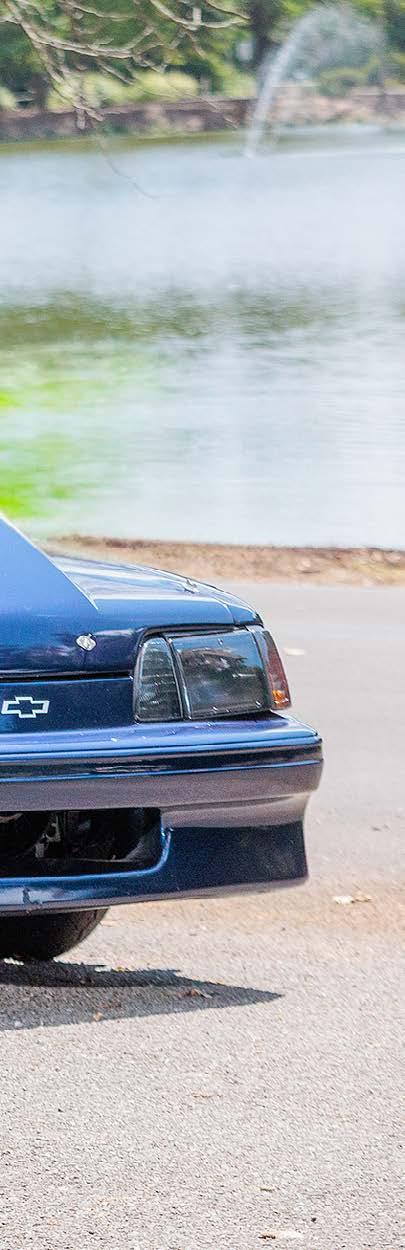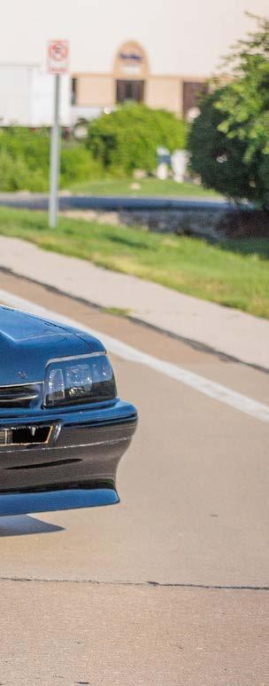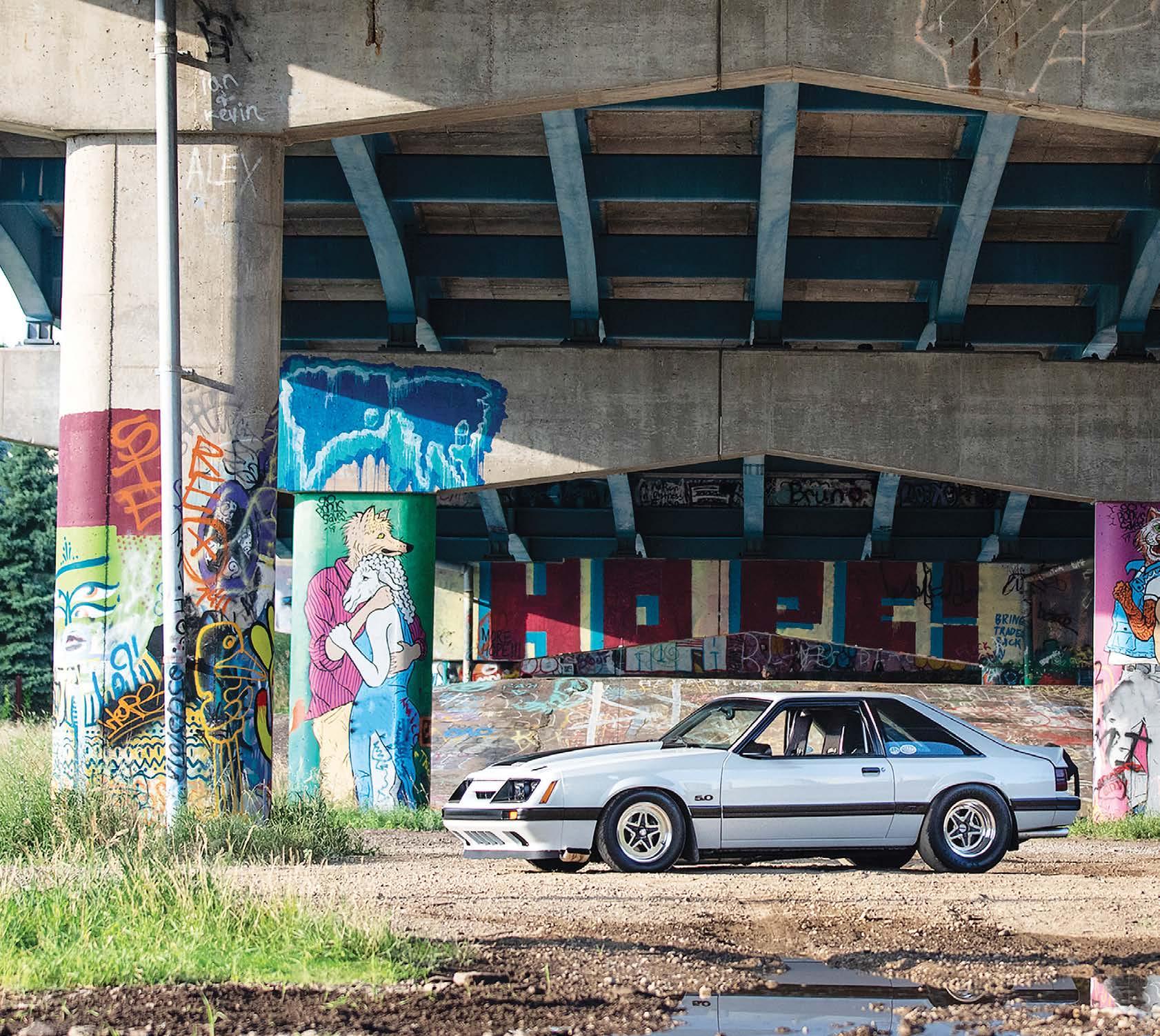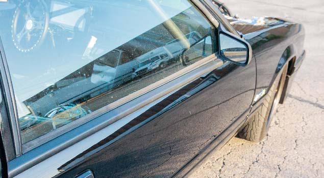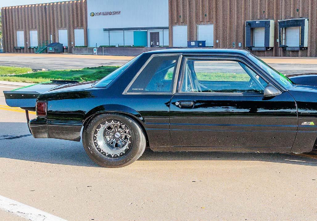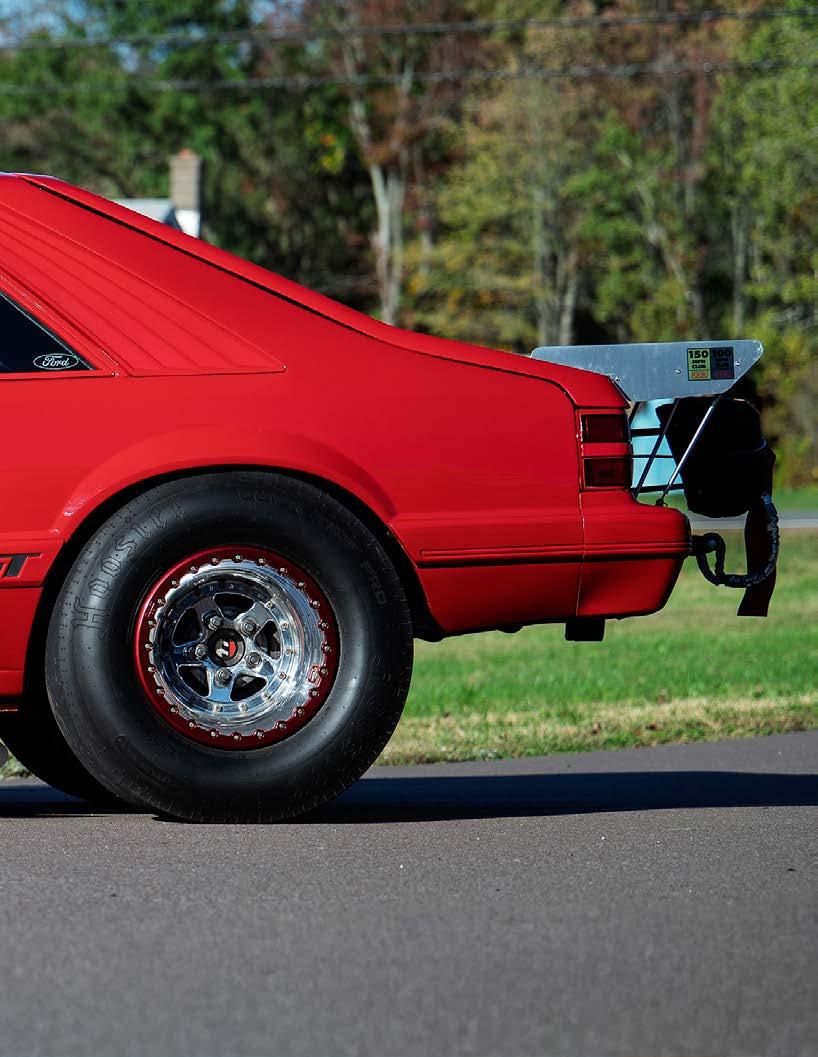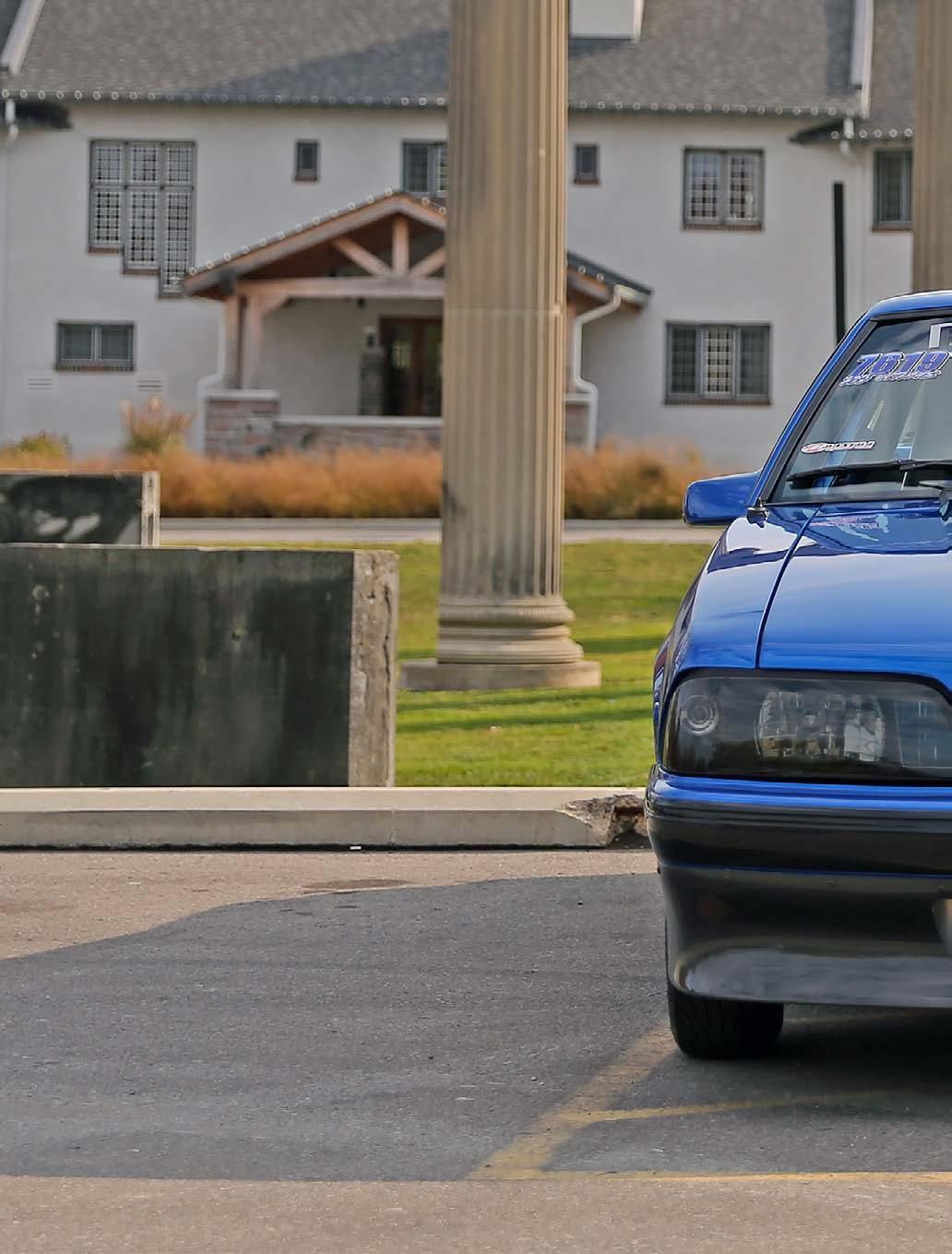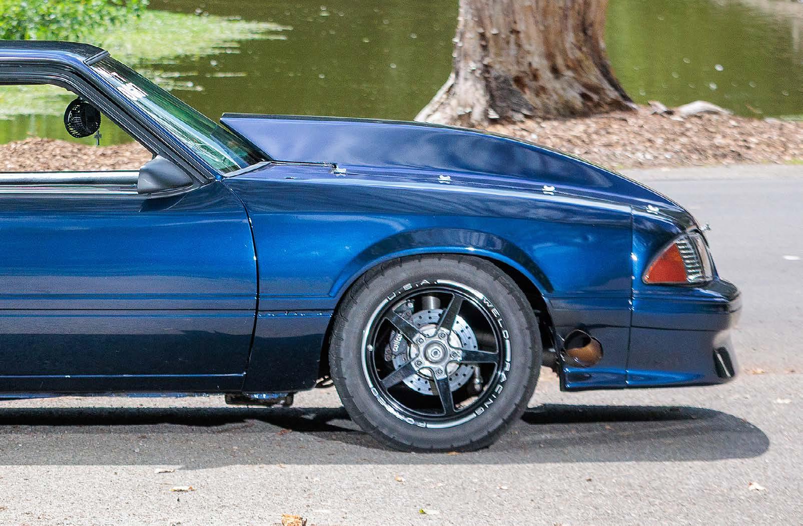 The slick paint on this Fox Body looks so nice because the owner is a painter by trade. The car is all original steel except for the fiberglass hood and carbon lower bumper extension