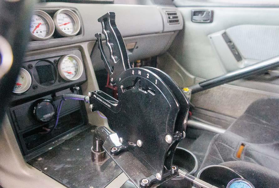 through the hoop of the Grant steering wheel, and the last control surface is the Hurst Billet shift.