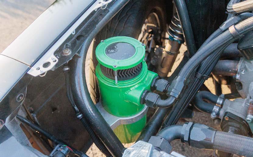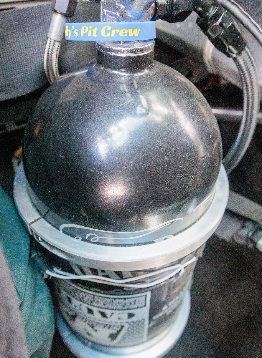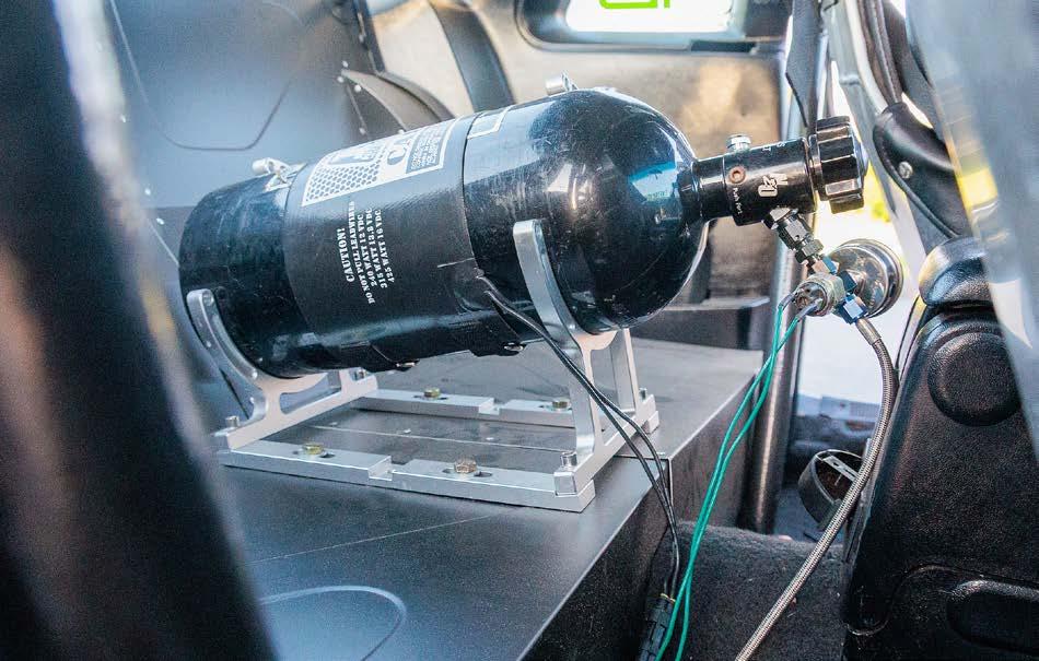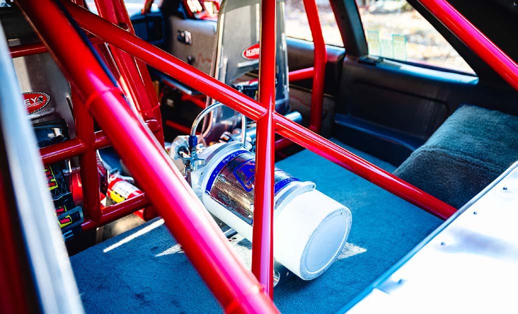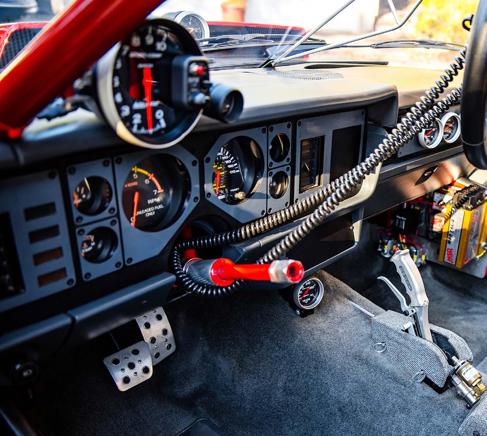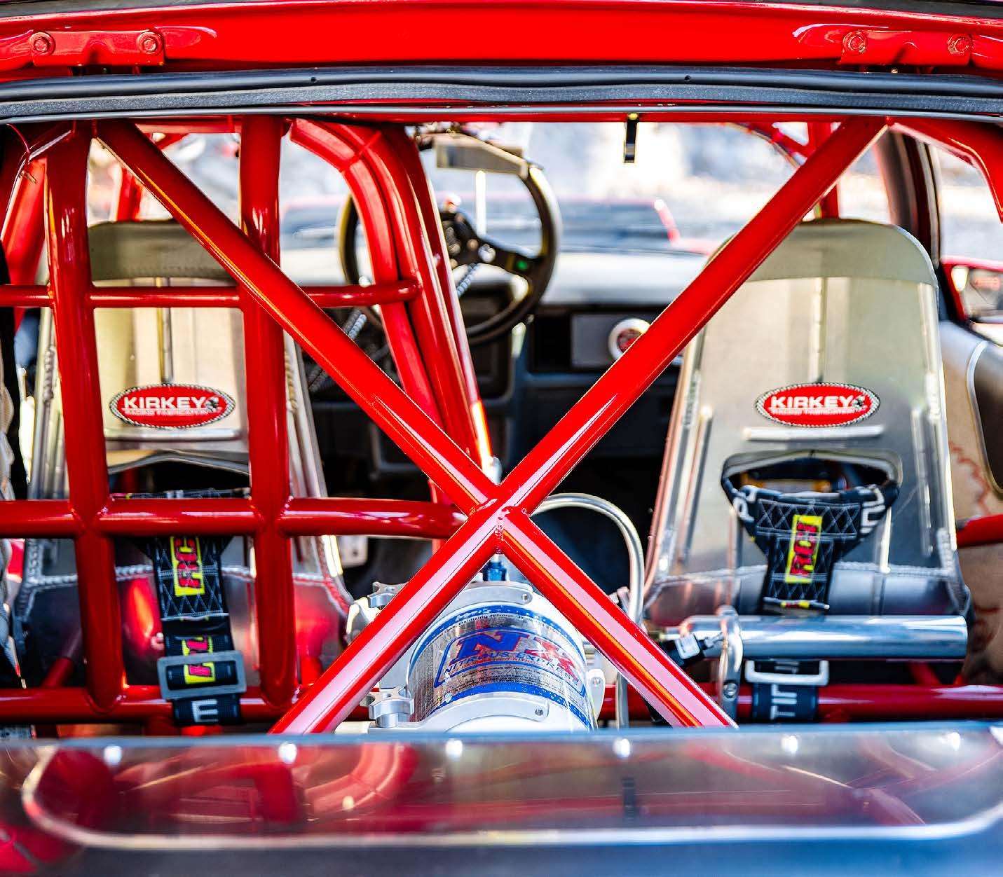 What was formerly the rear seat area is now reserved for the nitrous bottle and a trick Wolfe Racecraft rear firewall contains the 10-gallon fuel cell and rear-mounted battery safely away from the cockpit.