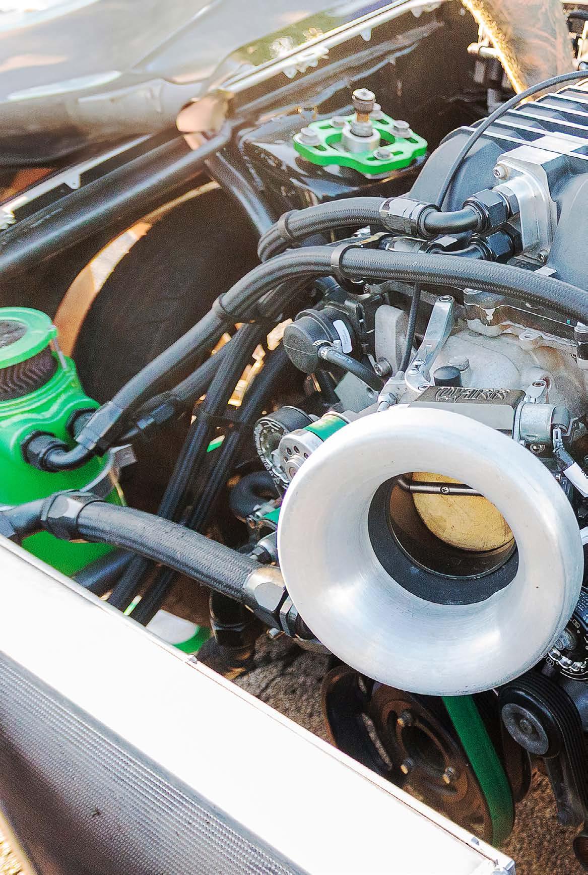 Such a clean install of the boosted Coyote engine combo looks like it belongs there from the factory.