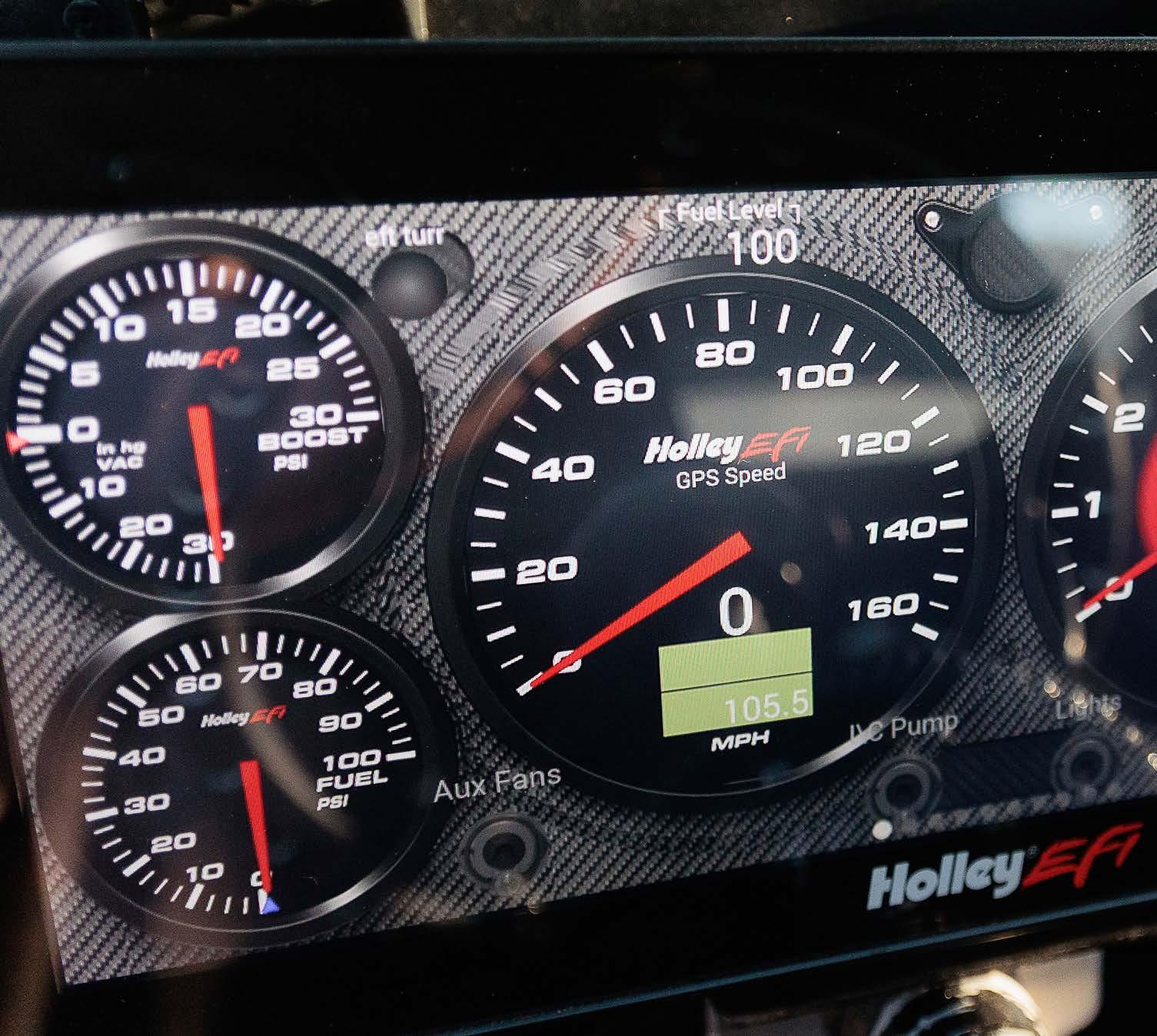 Holley EFI Dominator, Smart Coils, FIC 1650 injectors, Firecore50 wires, 7” Holley Dash.