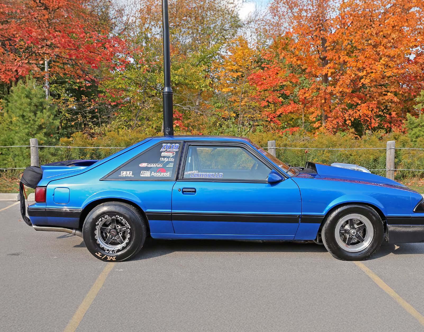 Aurora, Ontario’s Corrado Lentinello’s ’89 Fox Body hatchback started as a father/son project to build a fast street car and ended up as a heavily boosted record setting small tire brawler on the track.