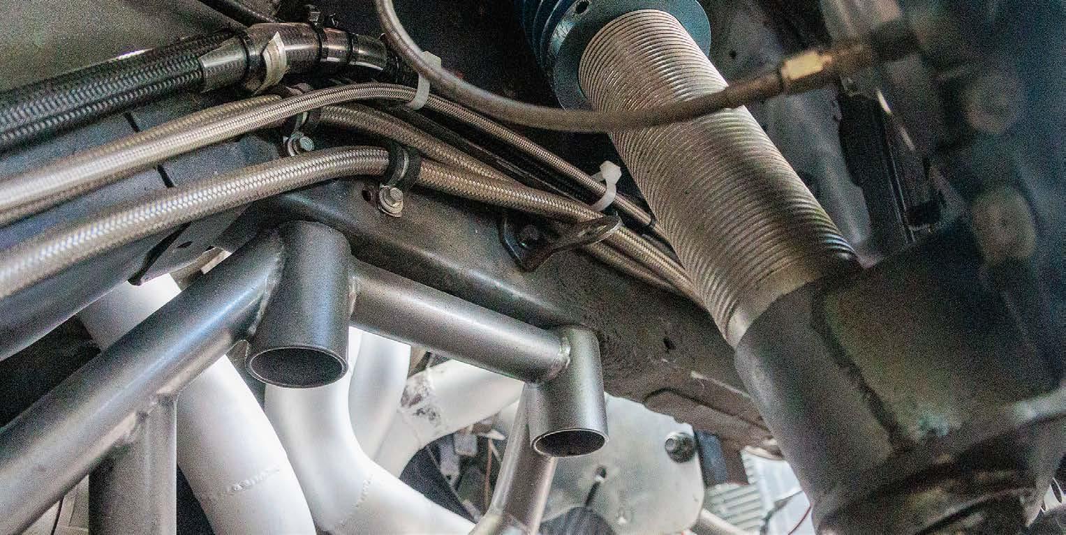 Like the car’s body, under the hood is sparkling clean and the polished tubing and Steve Morris throttle body hat, make shades mandatory issue!
