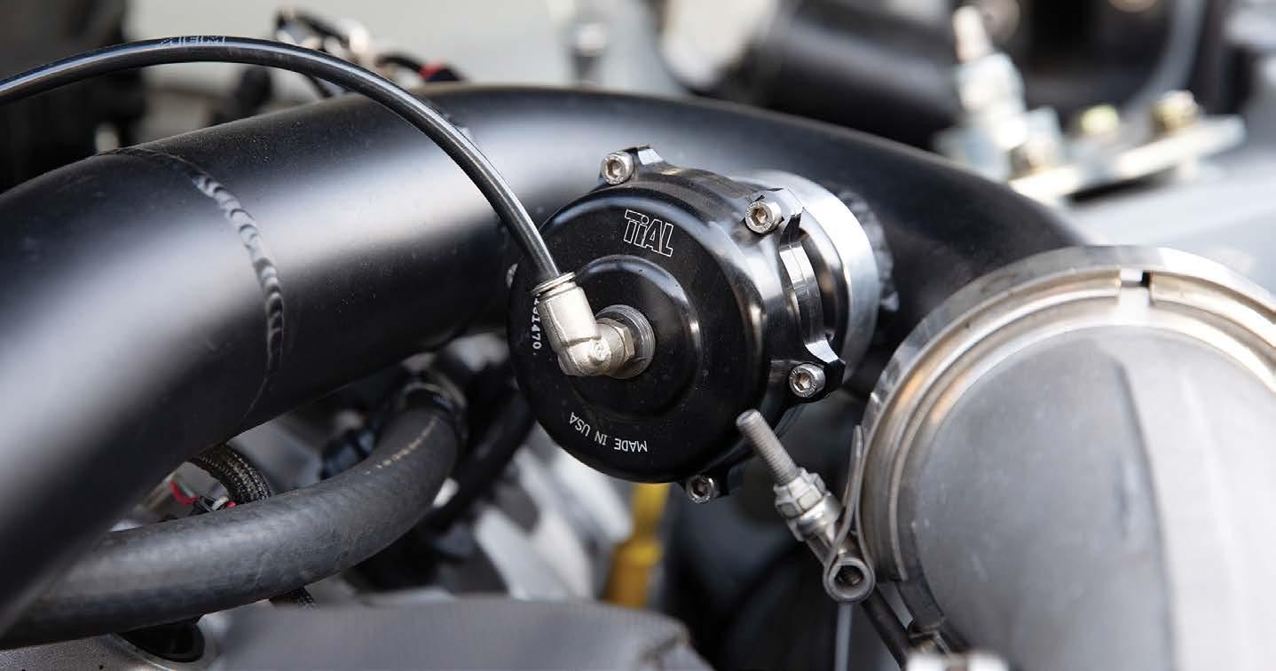 All turbo piping was handled by MAF Racing. The satin black gives the piping a less prominent look under the hood but there’s no mistaking the large aluminum turbo housing (right)