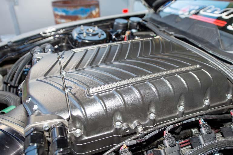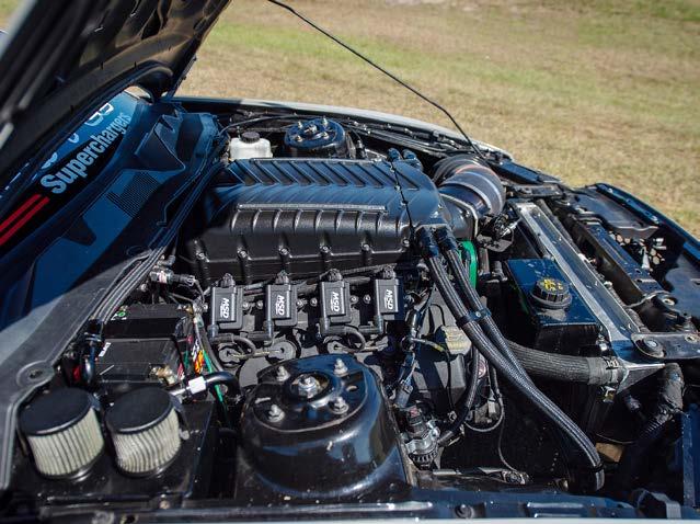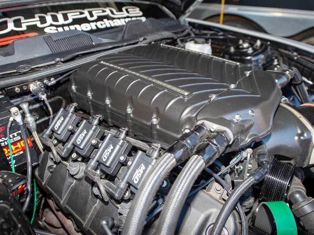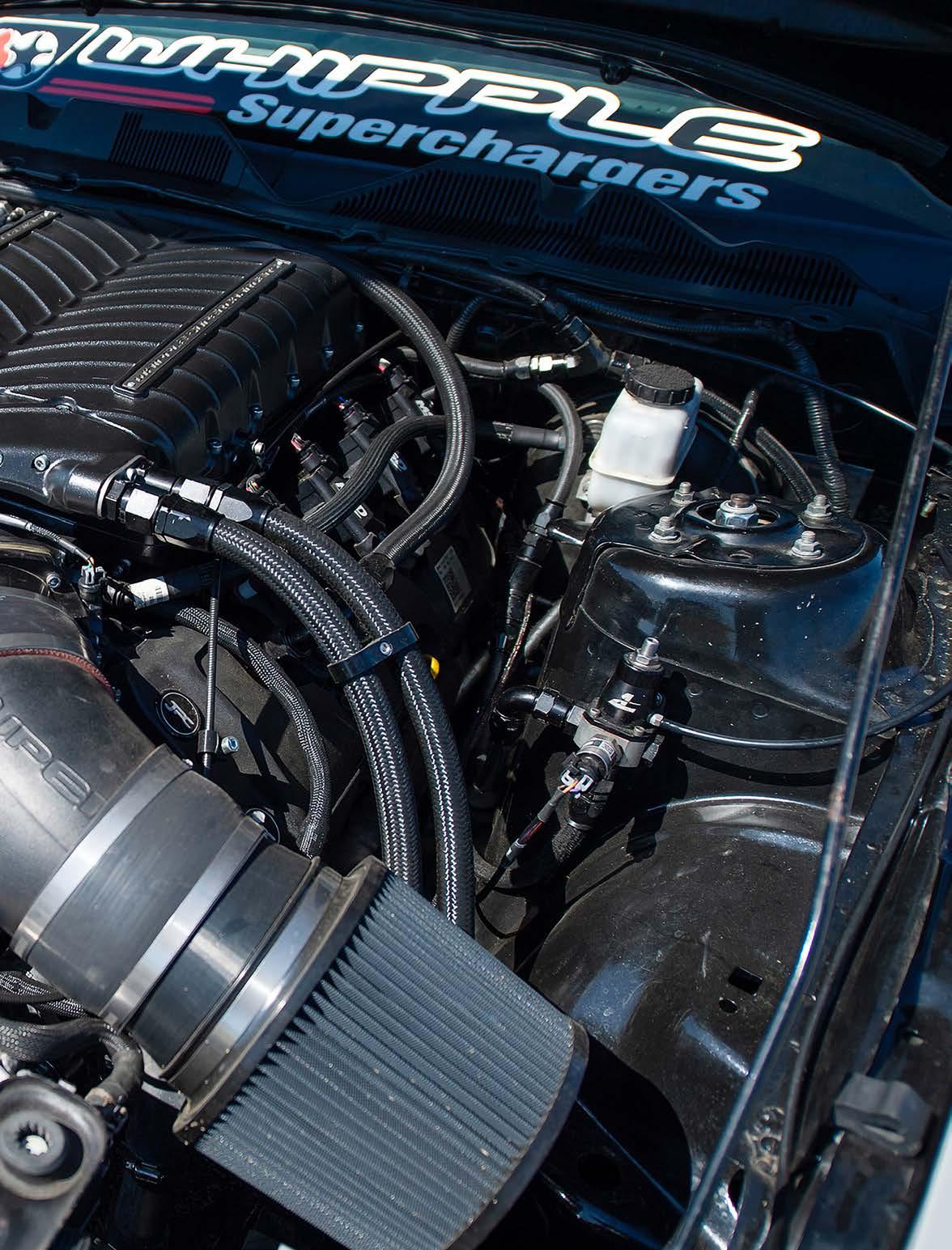 With help from Whipple Superchargers, Smith swapped out blowers again, going to a Gen 6 3.0 Whipple, and it wasn’t just your out-of-thebox blower, but one equipped with race-spec rotors and intercooler, a 10-rib belt, and a 150mm throttle body. Providing the complementary amount of fuel are triple Fore