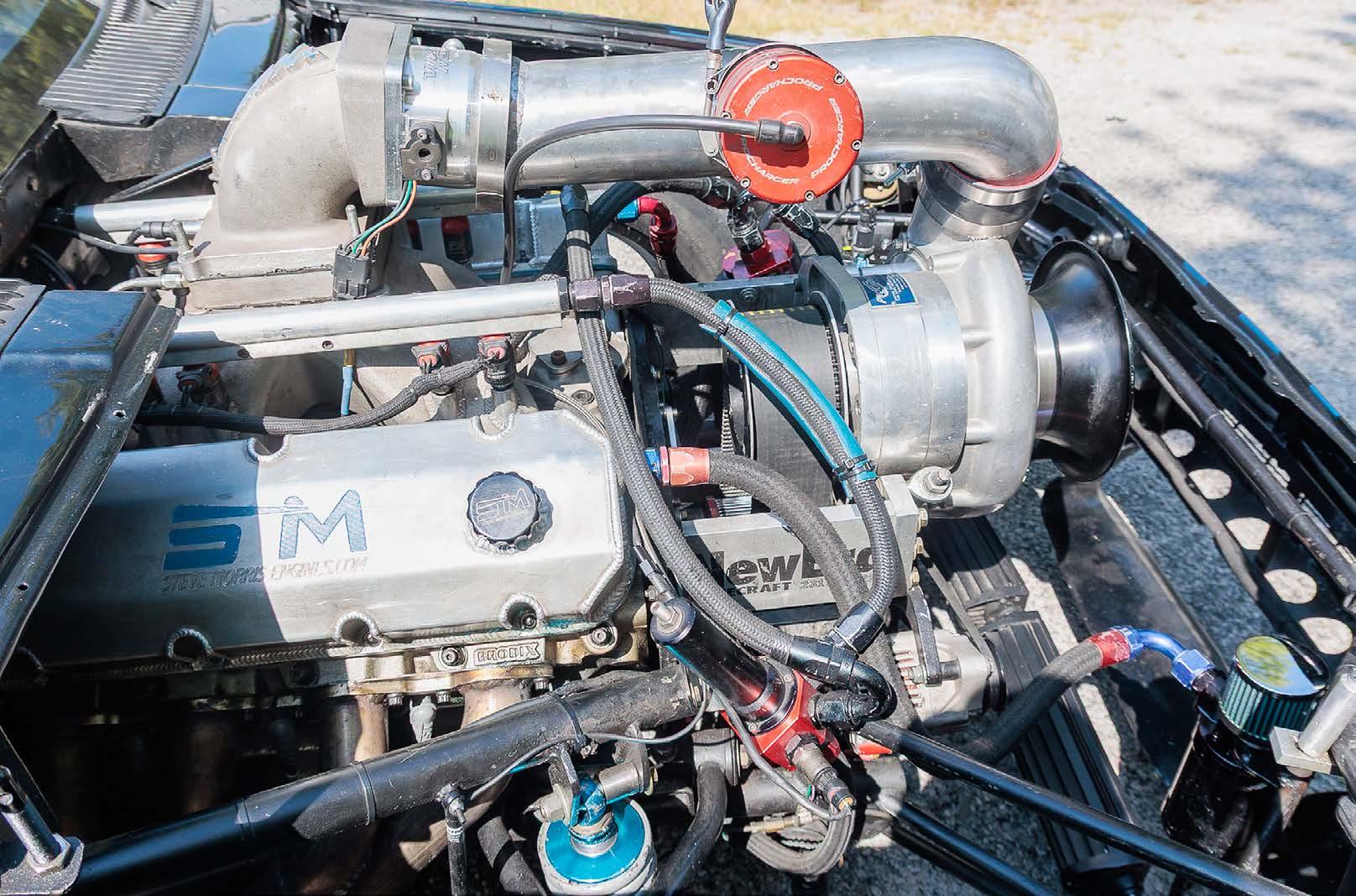 To further his need for speed, Smith had MPR Racing Engines build him a suitable powerplant. It was fitted with a Boss 302 crankshaft, Manley billet I-beam Pro connecting rods, and CP pistons with Total Seal rings. The cylinder heads were ported by Slawko Racing Heads and feature Manley 1mm larger Stainless valves with PAC springs, and custom blower cams from Todd Warren Cams enhance boosted operation.